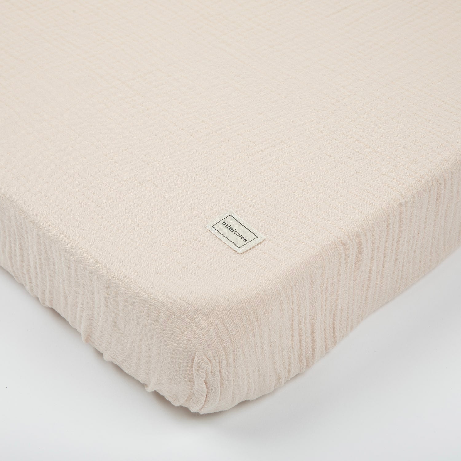 Sàbana ajustable en un teixit suau 100% cotó, perfecte per a la delicada pell del nadó. Apte des del naixement. S'adapta al matalàs de 50 x 90 cm i també amb la peça addicional per fer colecho. *El mini bressol és el model Docco de 90 x 50 cm de Cotinfant.