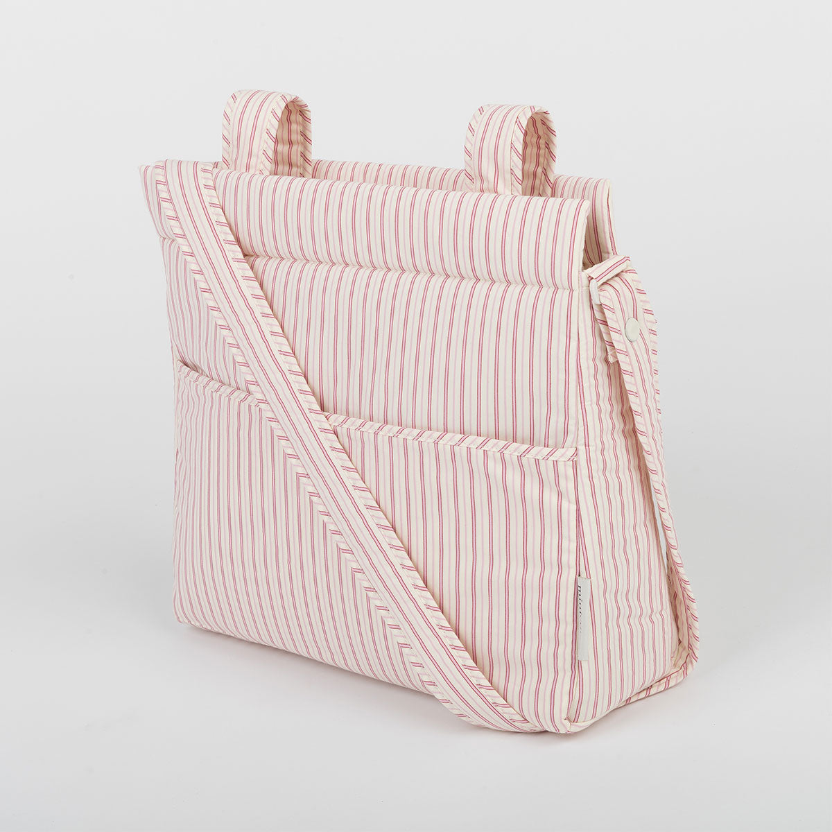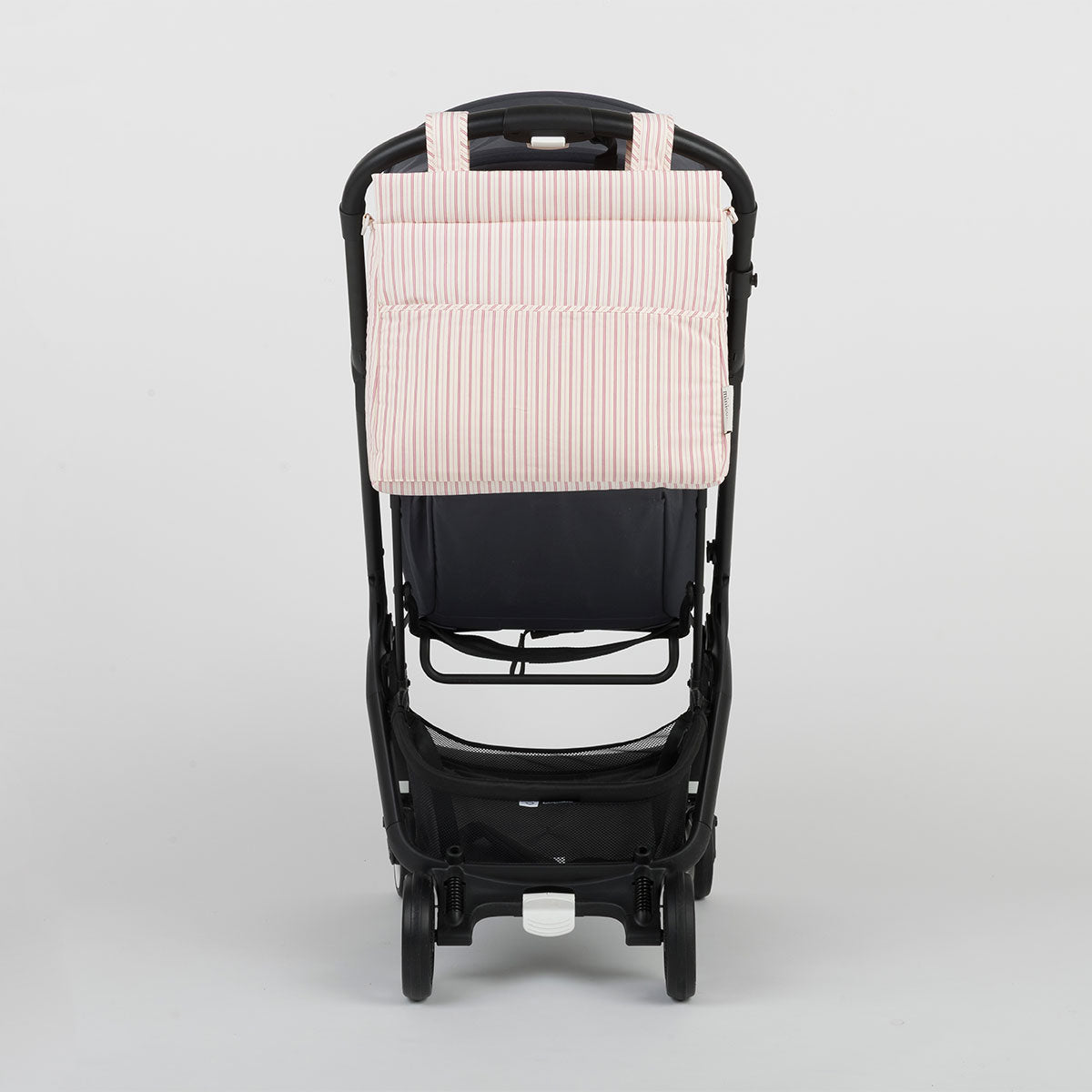 La nostra bossa Icon per al cotxet és molt lleugera. Està encoixinada, per la qual cosa els productes del seu interior estan protegits. Té l'interior de rizo amb dors impermeable perquè, si es bolca algun líquid, l'absorbeixi i no el deixi passar. S'agafa al cotxet amb dues cintes que es tanquen amb botó de click. També té una bandolera que es pot posar i treure, que també s'ajusta amb botó de click, per portar-la còmodament a l'espatlla o com a bossa creuada. Es tanca amb cremallera tant la part superior com el seu butxaca davantera.