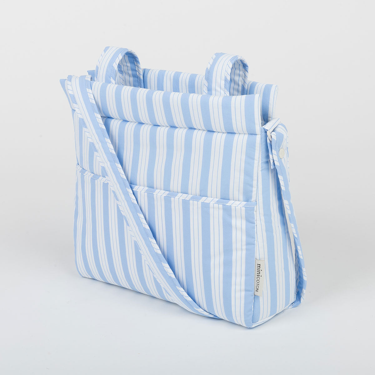 La nostra bossa Icon per al cotxet és molt lleugera. Està encoixinada, per la qual cosa els productes del seu interior estan protegits. Té l'interior de rizo amb dors impermeable perquè, si es bolca algun líquid, l'absorbeixi i no el deixi passar. S'agafa al cotxet amb dues cintes que es tanquen amb botó de click. També té una bandolera que es pot posar i treure, que també s'ajusta amb botó de click, per portar-la còmodament a l'espatlla o com a bossa creuada. Es tanca amb cremallera tant la part superior com el seu butxaca davantera.