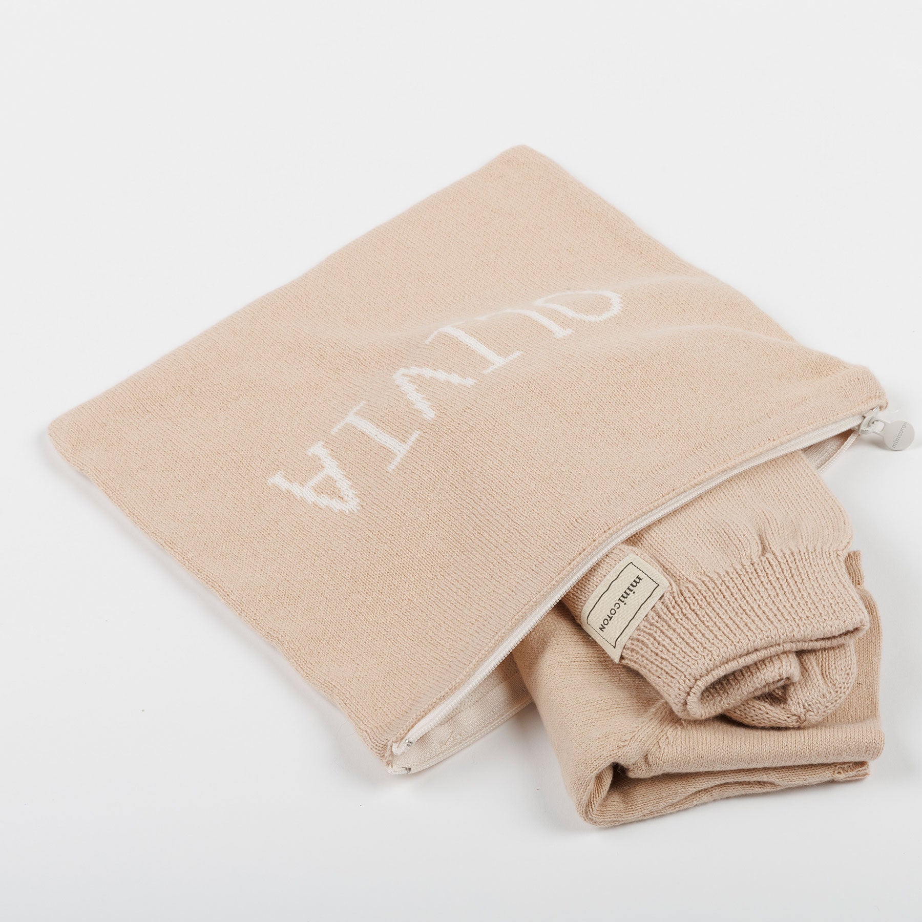 Bossa per muda teixida amb el nom i amb tancament de cremallera.