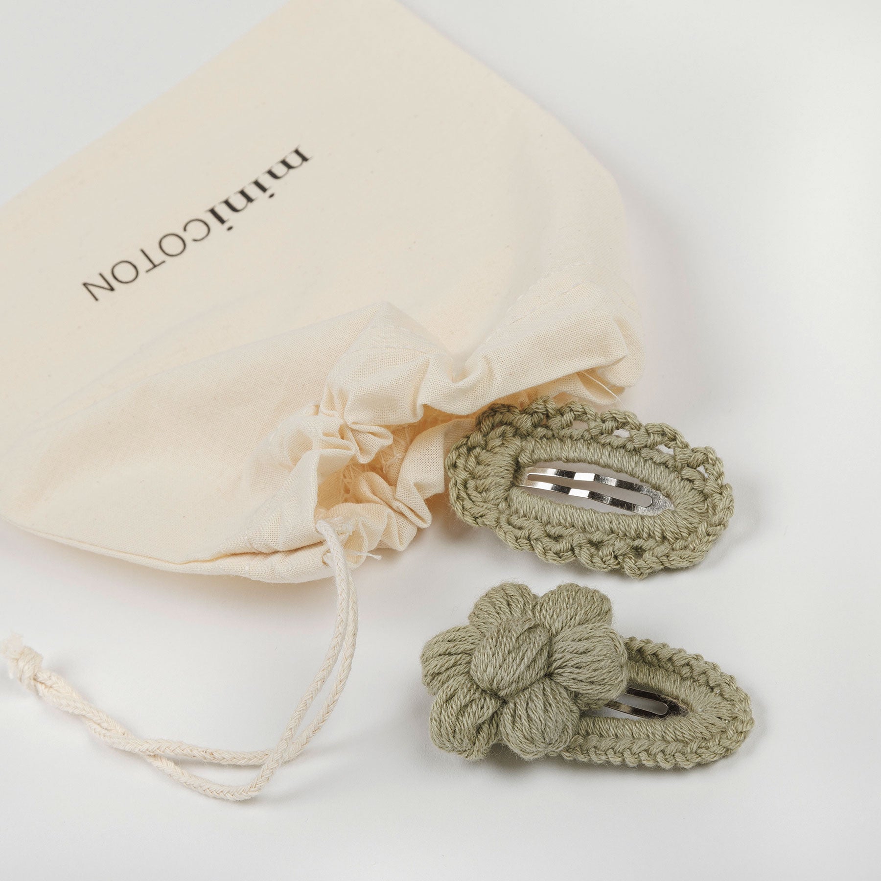 Set de 2 clips fets a mà en crochet en cotó 100% Oeko Tex Standard 100.