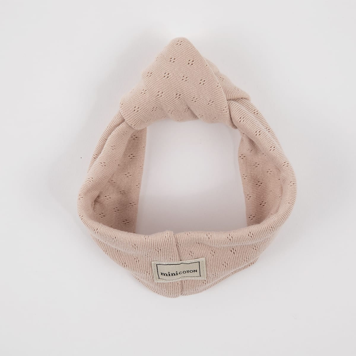Diadema de nus de la col·lecció NEWBORN en punt holey de cotó. Gràcies al nus, es pot regular i ajustar la mida, per la qual cosa es pot usar des de nadó deixant el nus més gruixut sense apretar i anar ajustant el nus quan van fent-se grans. Sorprèn com s’adapten tan bé. Una manera ideal de completar els looks i fer-los dels més estilats.