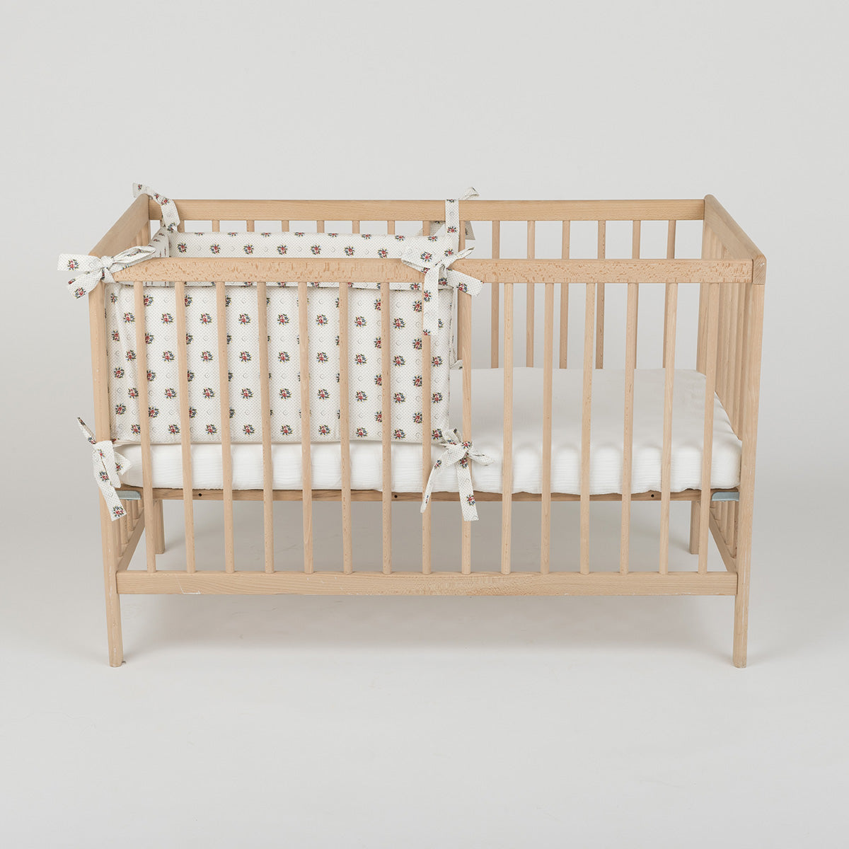 Aquest protector de bressol “Half” és per a bressols de 120 x 60cm. Cobreix la meitat del bressol a la part del capçal. En cas que ho prefereixis, pots cobrir tot el perímetre del bressol comprant dues unitats.
