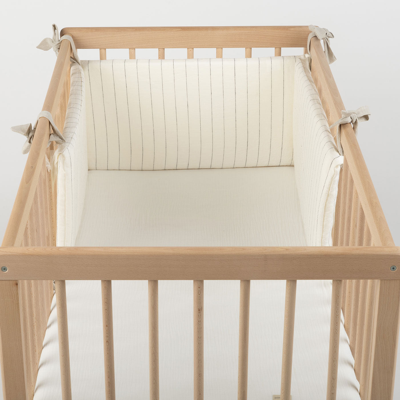 Aquest protector de bressol “Half” és per a bressols de 120 x 60cm. Cobreix la meitat del bressol a la part del capçal.