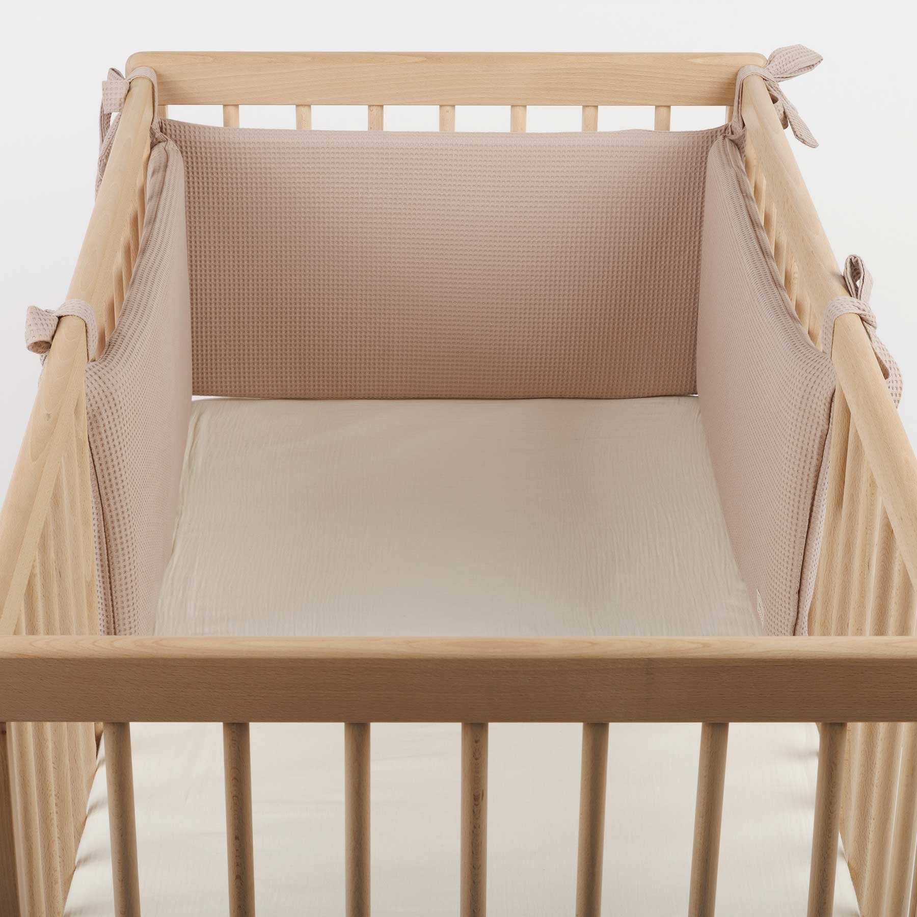 Aquest protector de bressol “Half” és per a bressols de 120 x 60cm. Cobreix la meitat del bressol a la part del capçal.