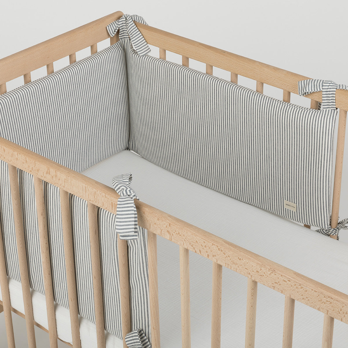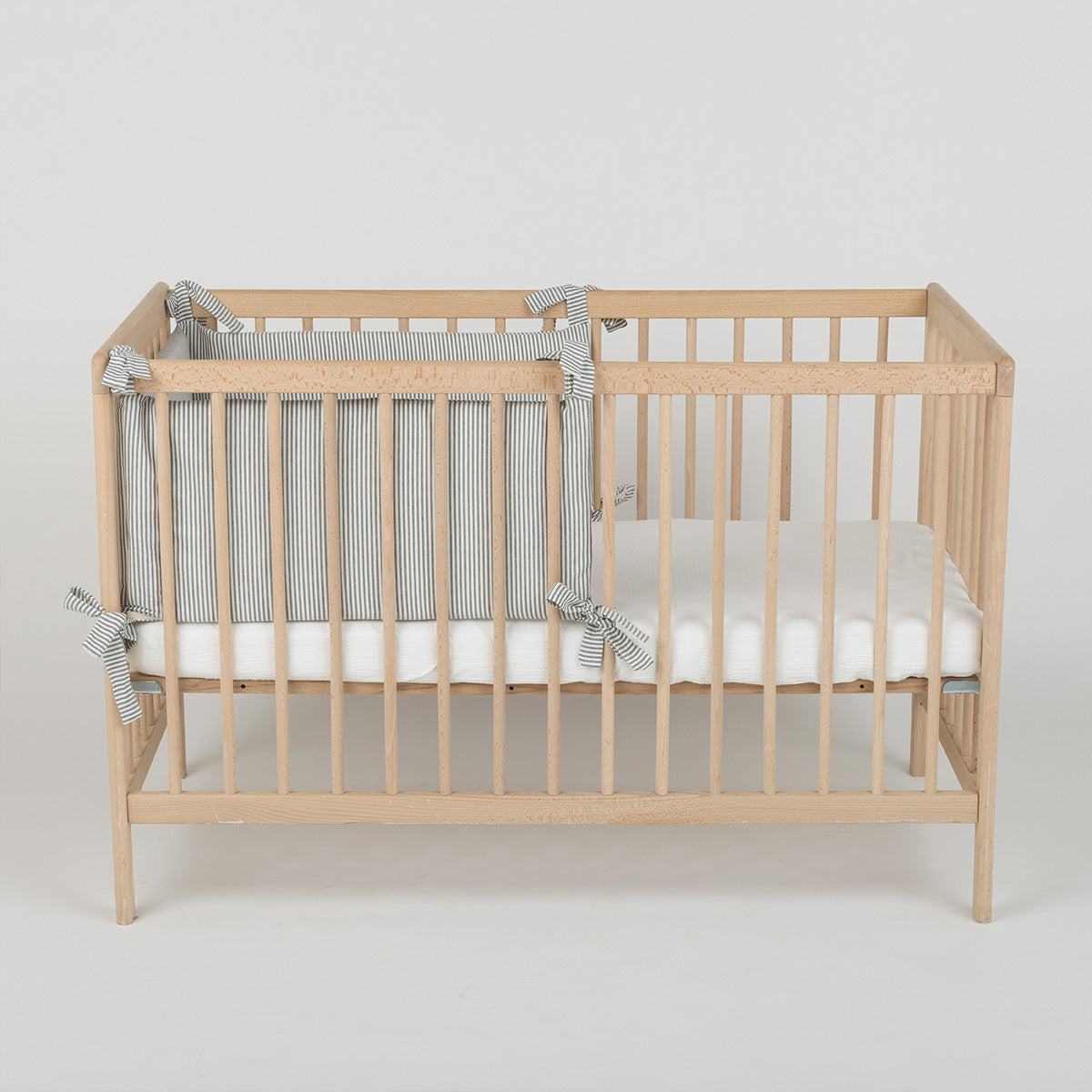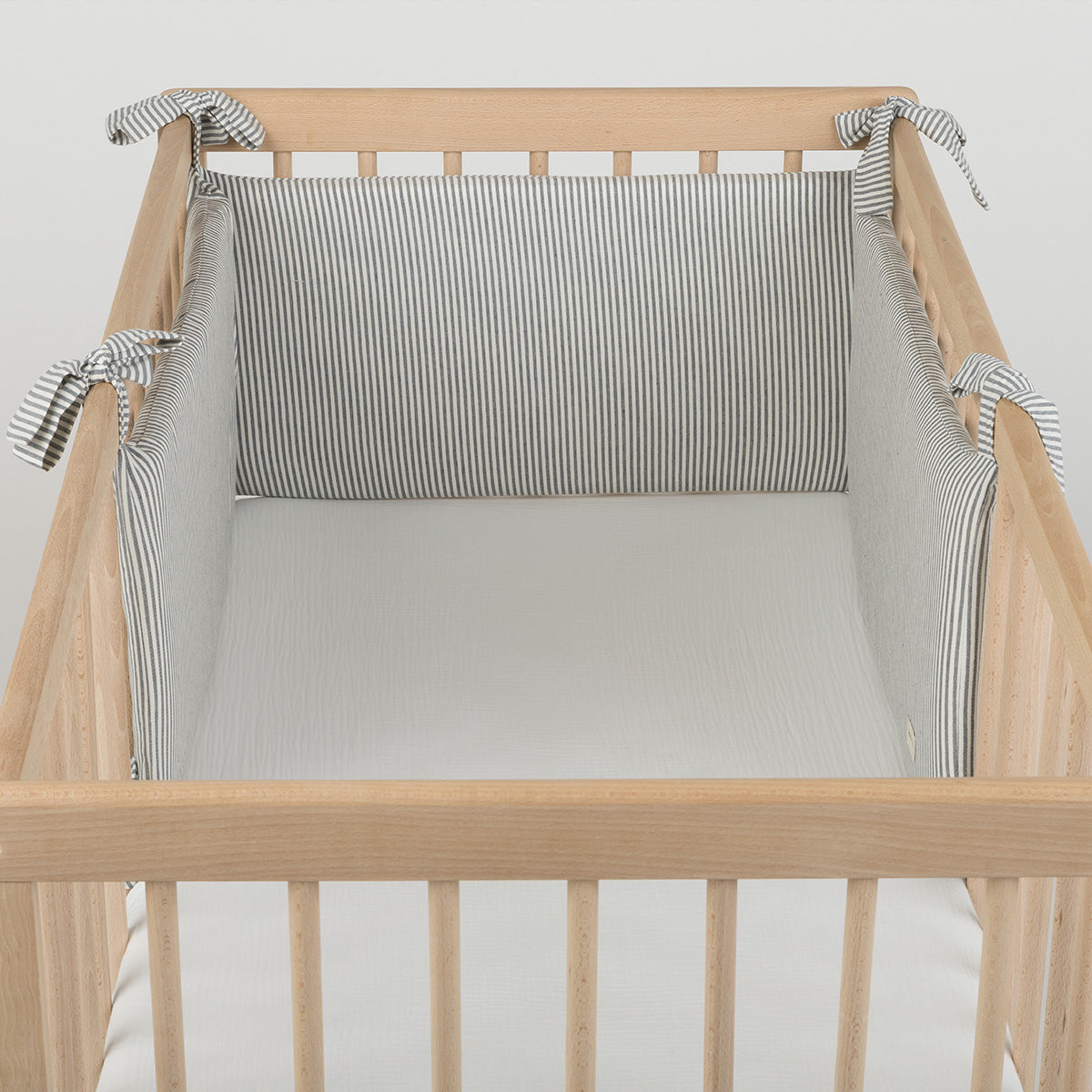 Aquest protector de bressol “Half” és per a bressols de 120 x 60cm. Cobreix la meitat del bressol a la part del capçal. En cas que ho prefereixis, pots cobrir tot el perímetre del bressol comprant dues unitats.
