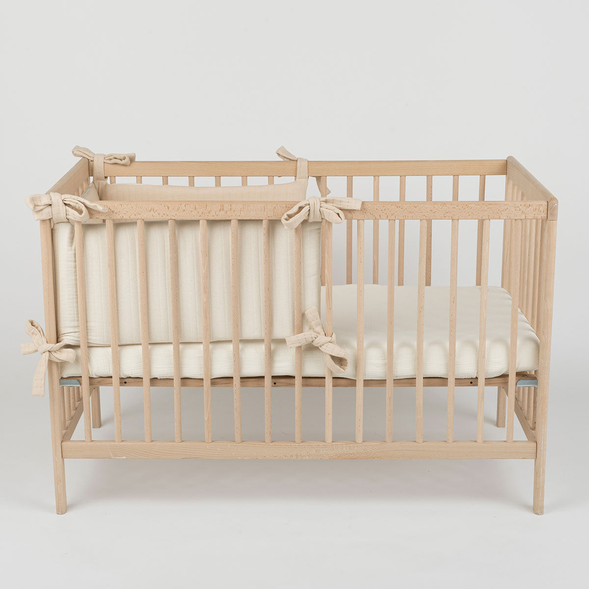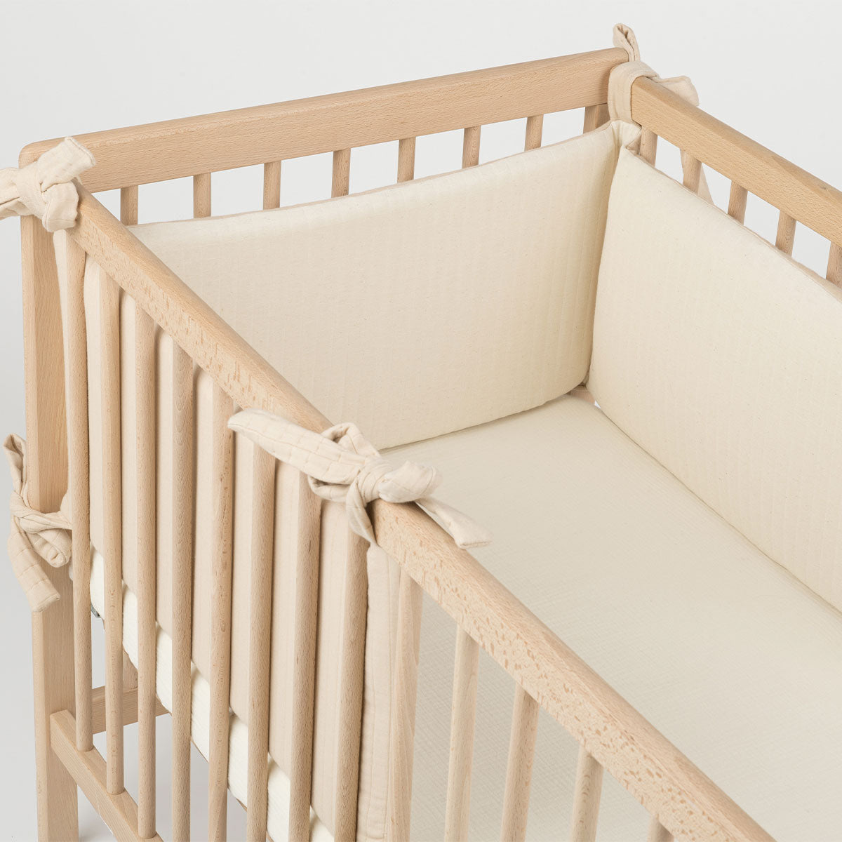 Aquest protector de bressol “Half” és per a bressols de 120 x 60cm. Cobreix la meitat del bressol a la part del capçal. En cas que ho prefereixis, pots cobrir tot el perímetre del bressol comprant dues unitats.