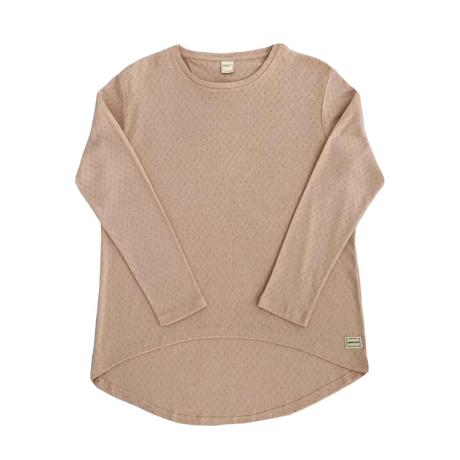 Per anar a joc amb els més petits de la casa. Una dessuadora de tall estilós, sent més llarga per la part de darrere, sisa despenjada i màniga llarga. En textura de rizo. Disponible en els quatre colors de la col·lecció: Crudo, Rosa, Nube i Musgo. Talla única M.