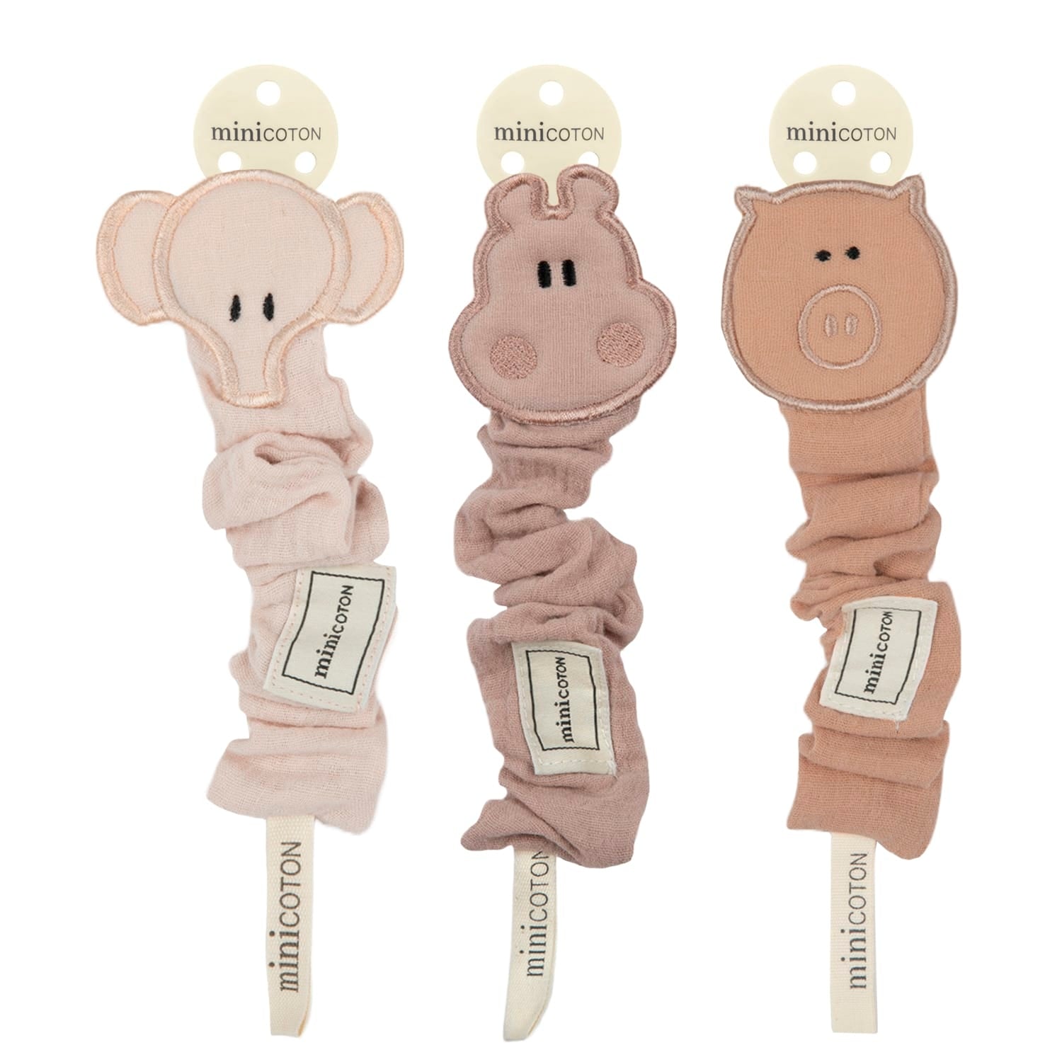 Una selecció dels nostres xumeteros Animals en tons roses: Elephant + hippo + pig. L’accessori perfecte per completar els looks de les nostres baby girls. 100% cotó orgànic.