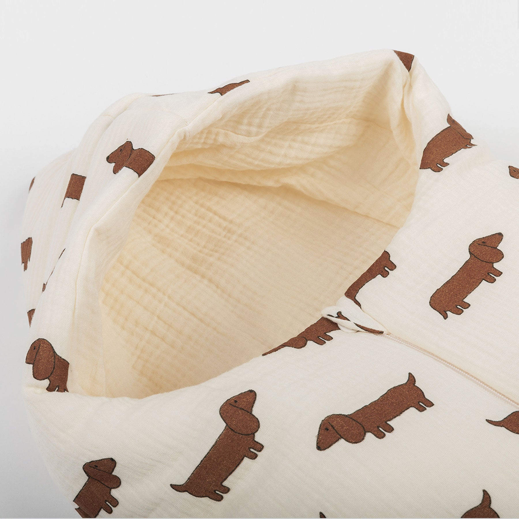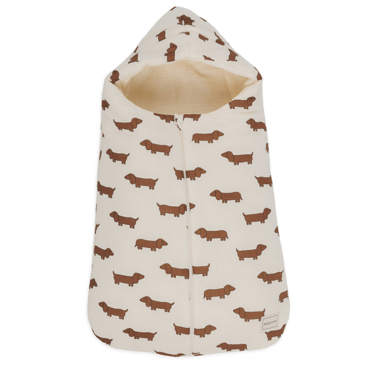 És un sac universal per a tots els capsets de cotxet, cucos, moisès, llits i minicunetes. El farcit és fi d'efecte ploma, molt tou i lleuger, ideal per a entretemps i les nits d'estiu.