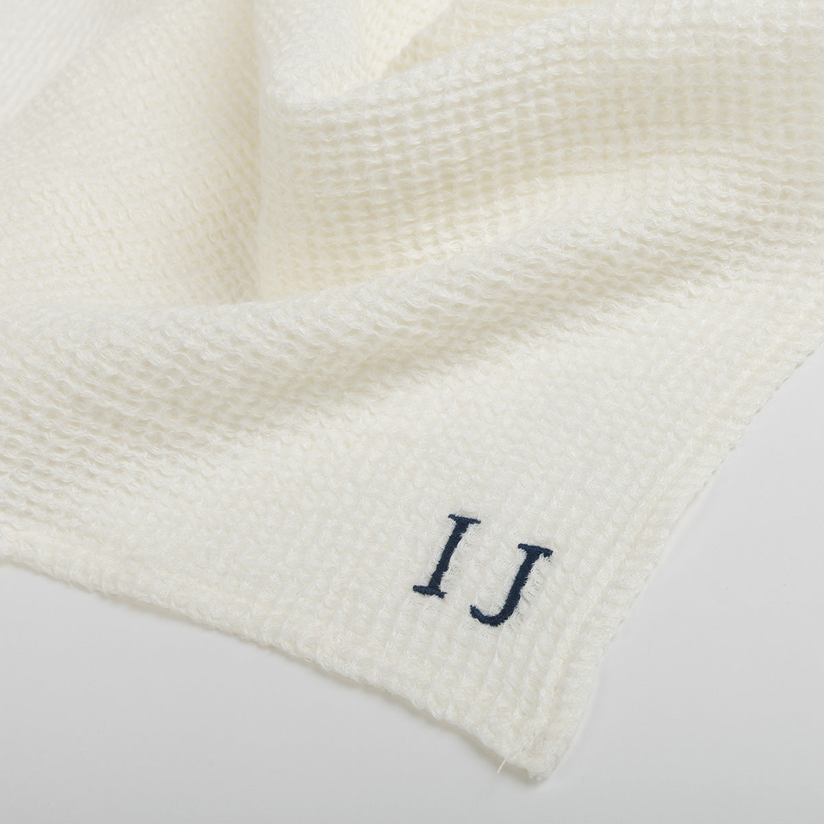 Segon drap confeccionat en teixit 100% lli amb textura tipus waffle. Aquest drap es pot personalitzar amb les teves inicials.