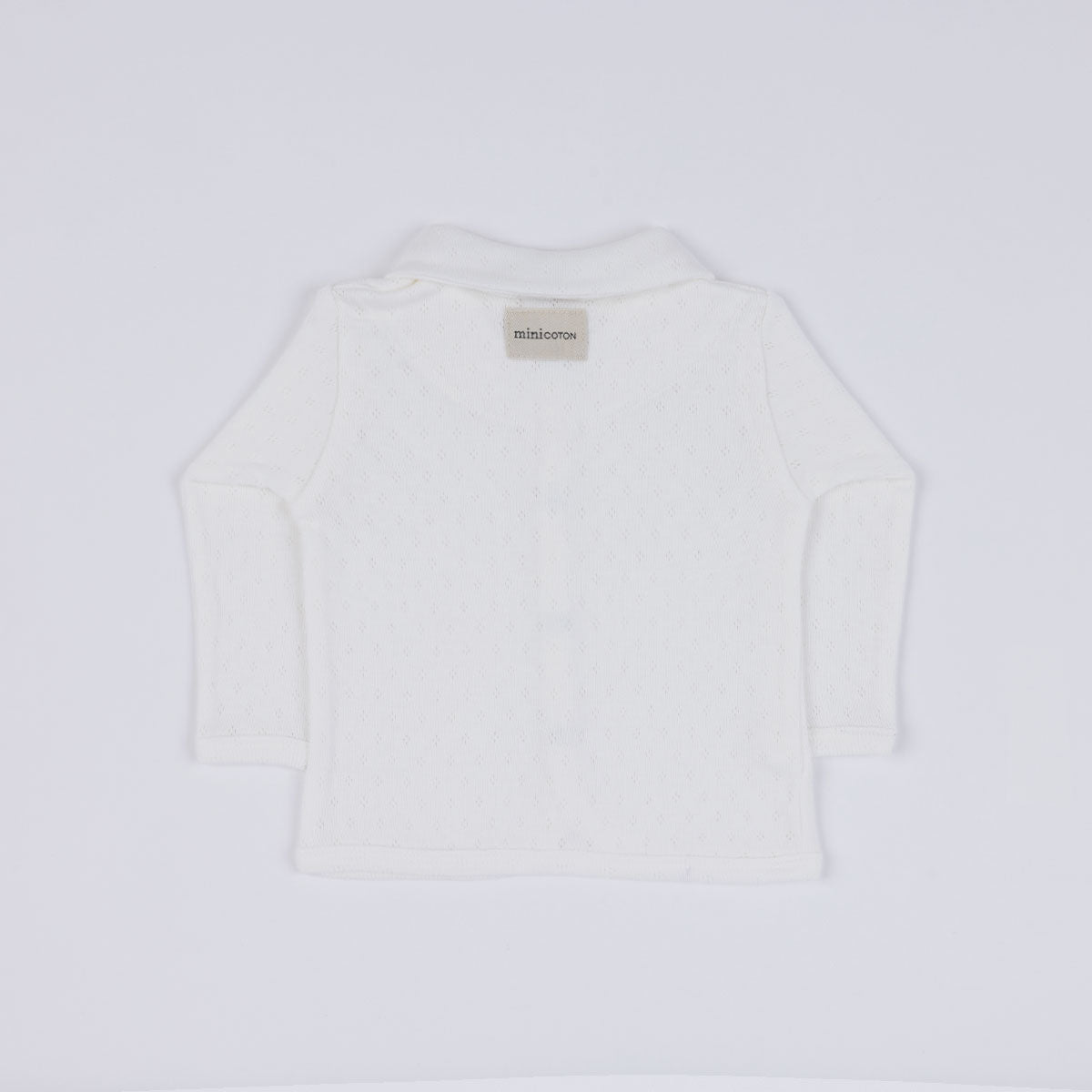 Top en teixit de punt de cotó holey. Es tanca a la part del davant amb botons automàtics al to.