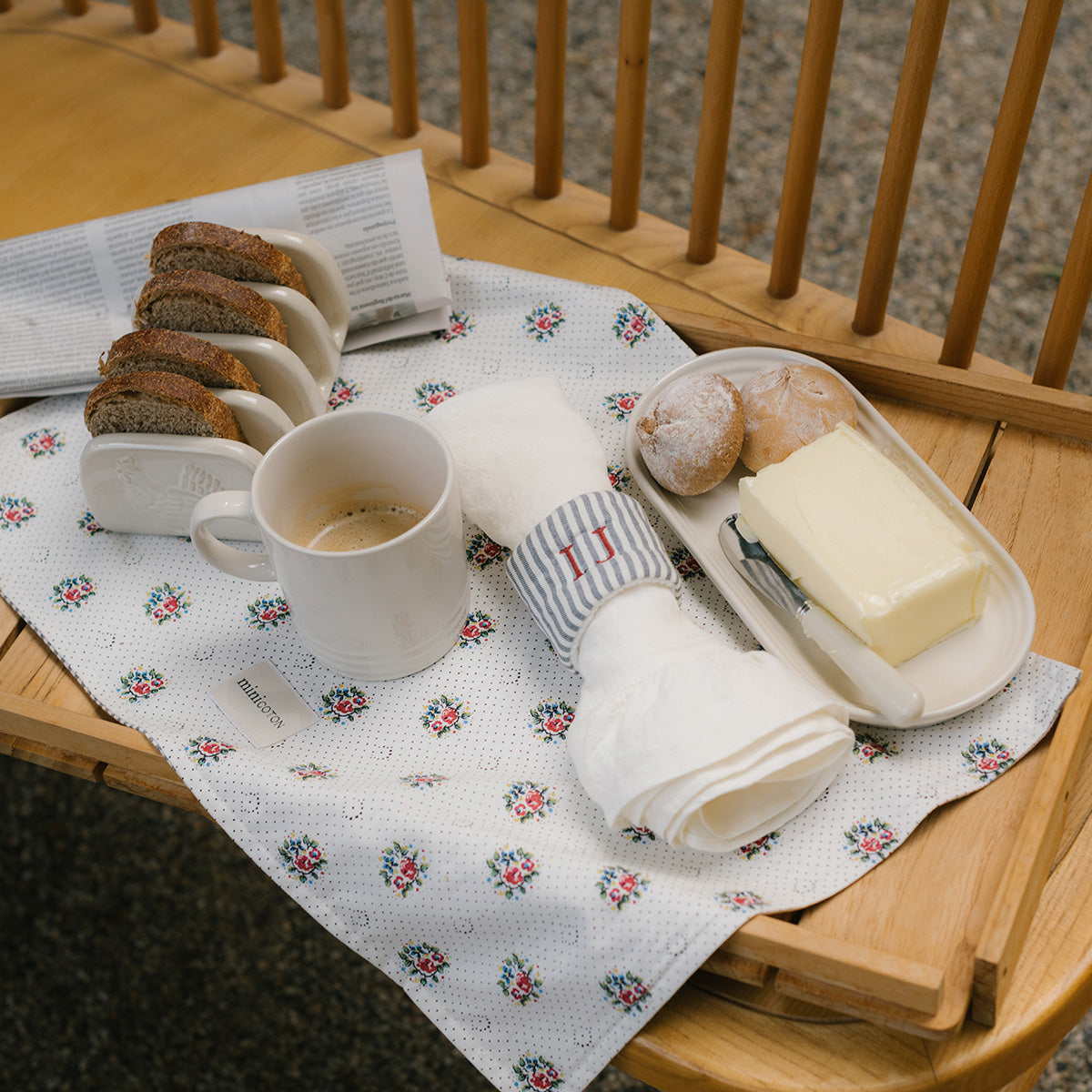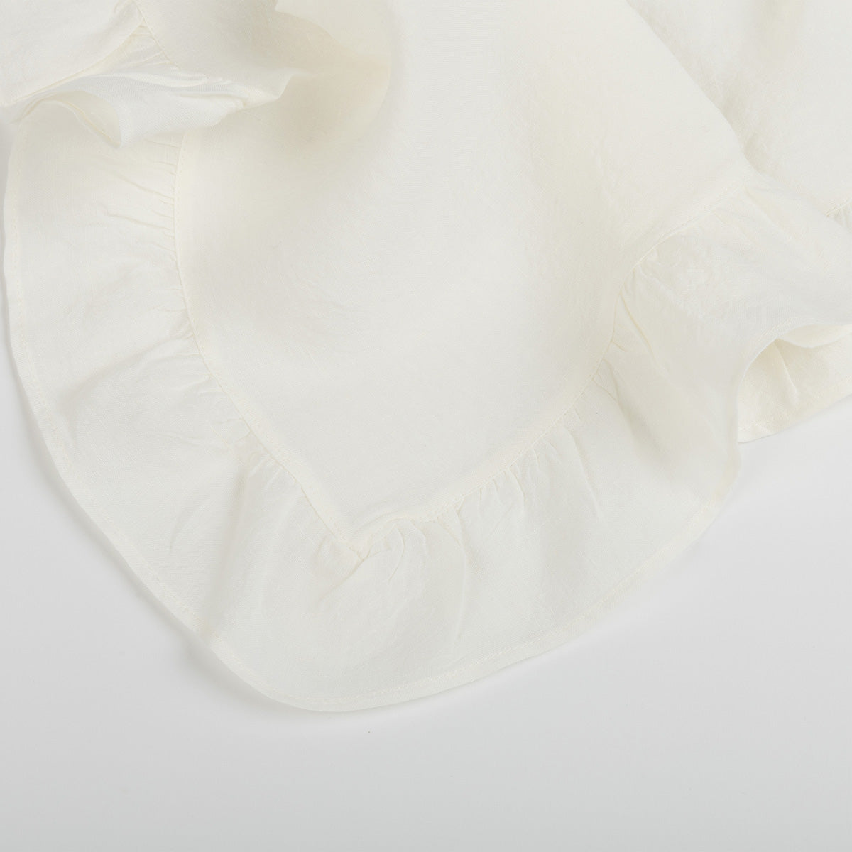 Tovalló de lli 100% amb un volant al seu voltant. Molt vaporós i ideal per a qualsevol ocasió. Va ideal amb els nostres anells per a tovallons.