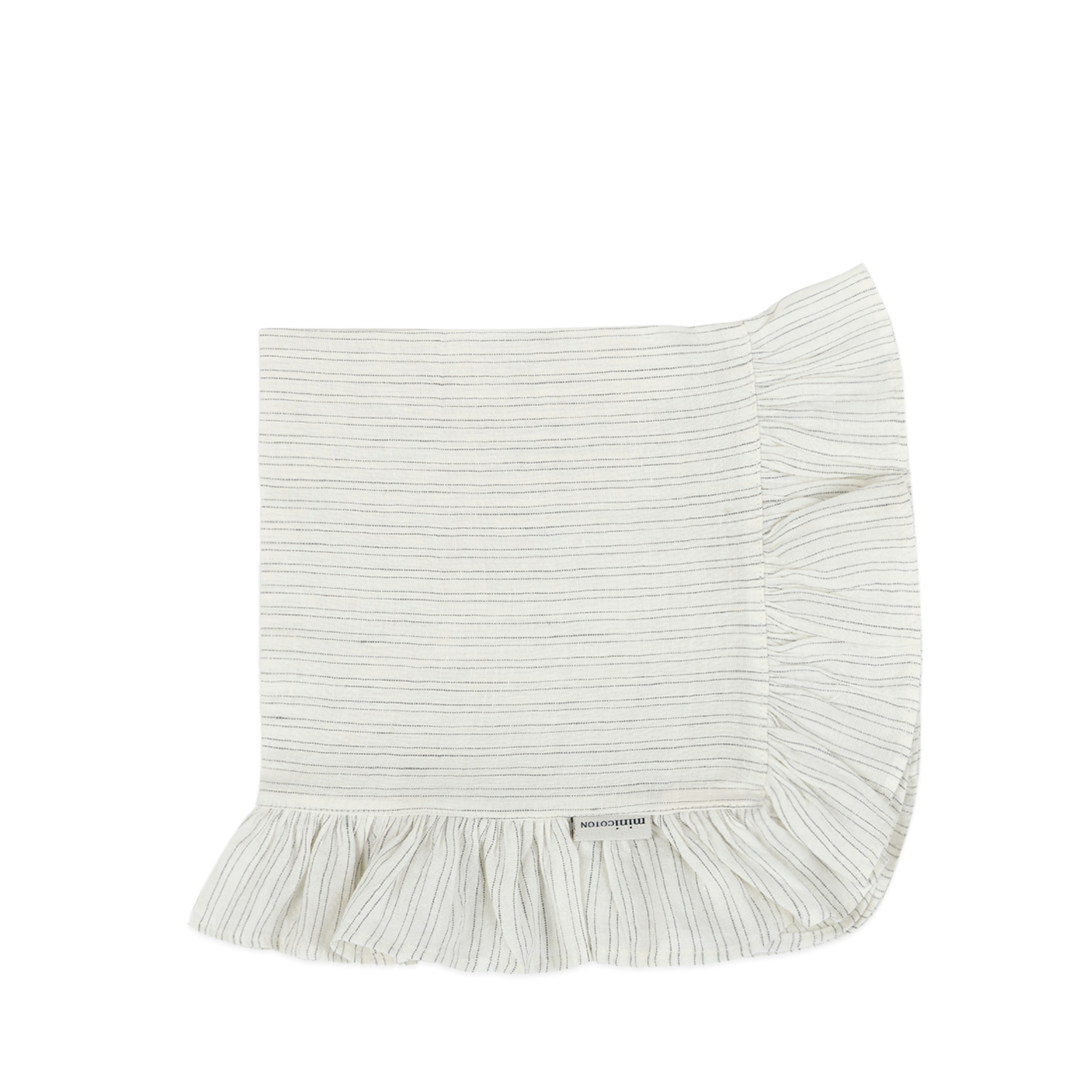 100% Leinenserviette mit einem Rüschenrand. Sehr luftig und ideal für jede Gelegenheit. Passt perfekt zu unseren Serviettenringen.