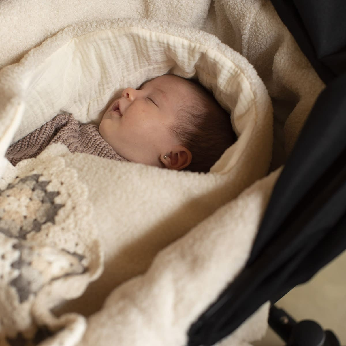Dies ist unser Tragewannebezug für den Bugaboo Fox, Cameleon, Donkey und Buffalo. Minimalistisch, so wie wir es lieben. Er ist in die Tragewanne integriert und passt sowohl mit als auch ohne Fußabdeckung dank seiner seitlichen Bänder. Er wird über die Matratze gelegt und schafft einen Komfortbereich für das Baby. Aus Shearling-Stoff in Naturfarbe mit Lammfellstruktur.