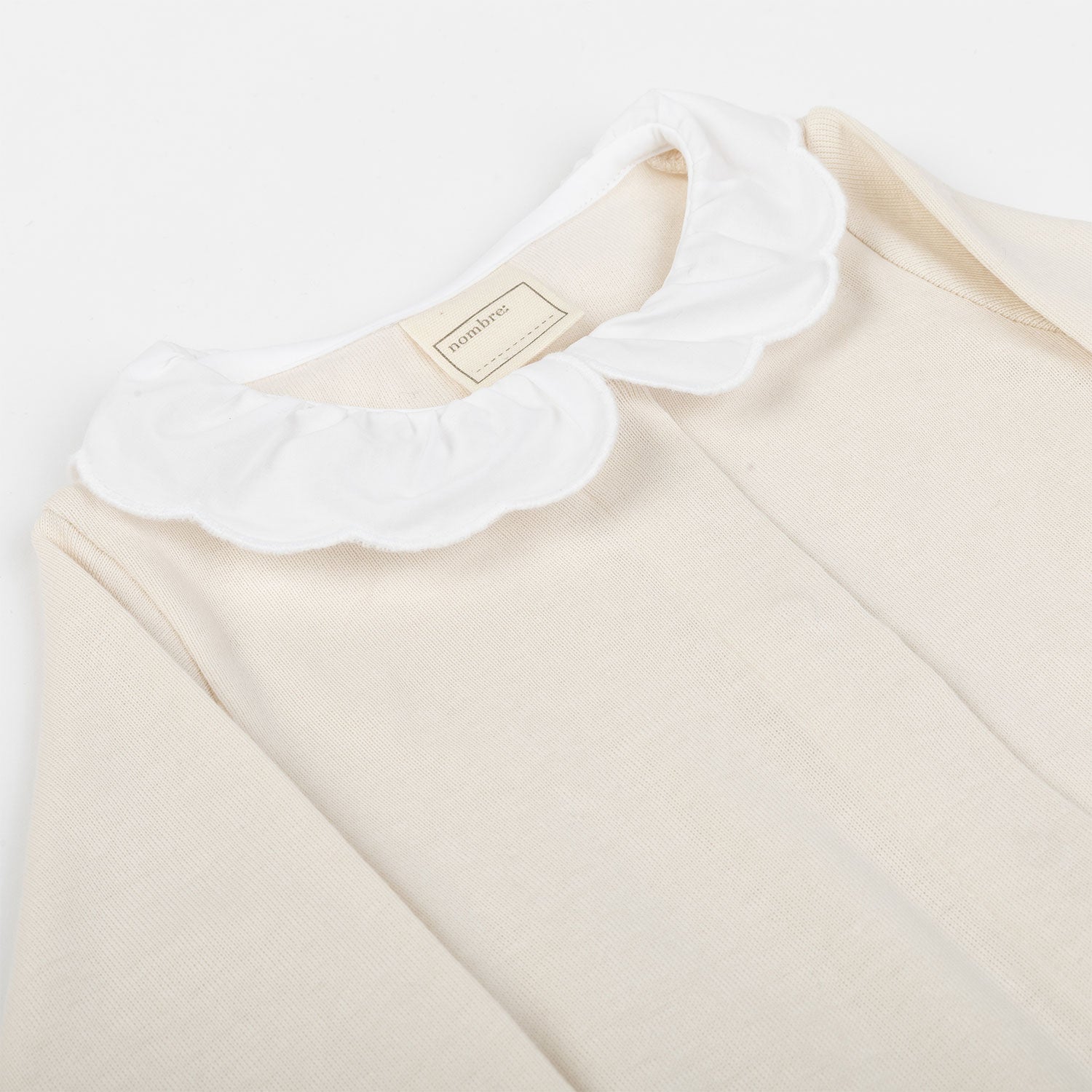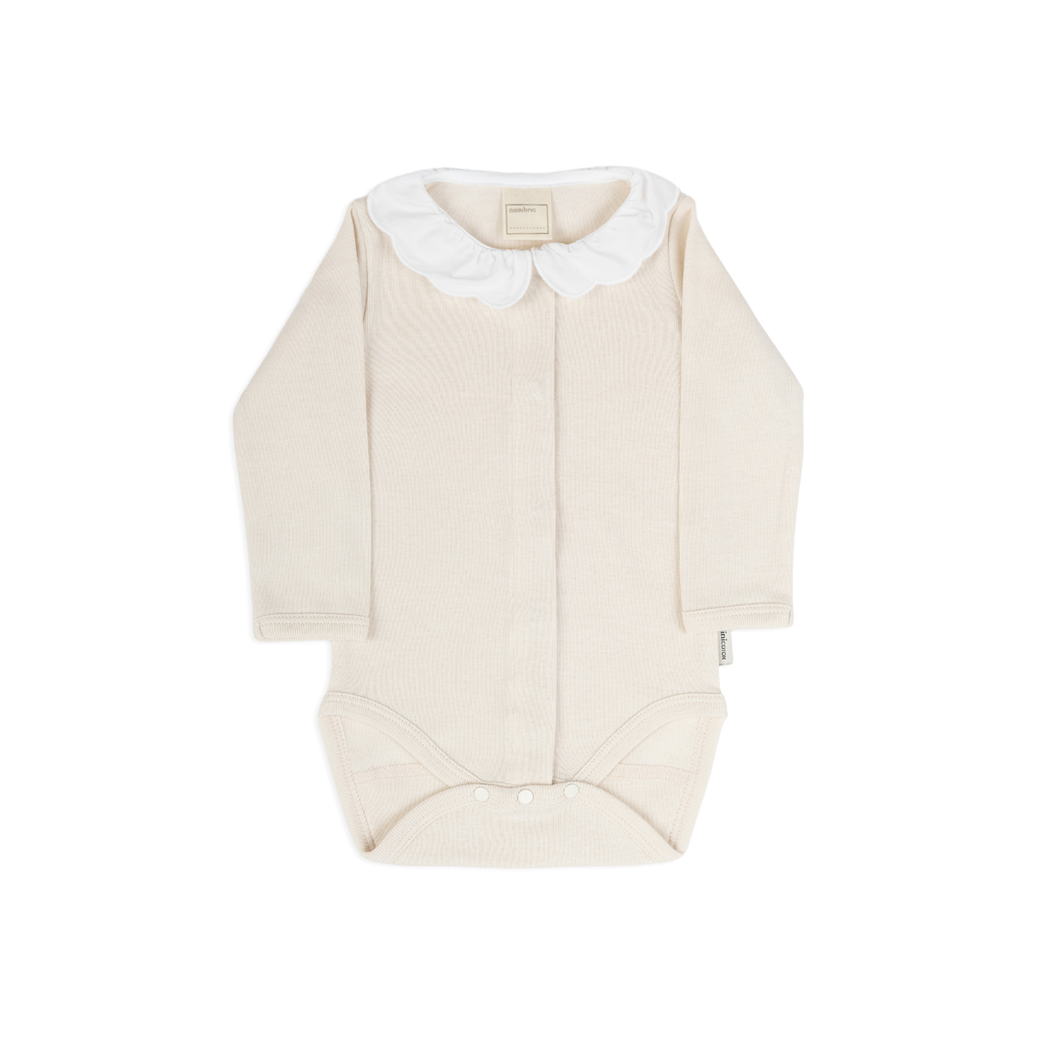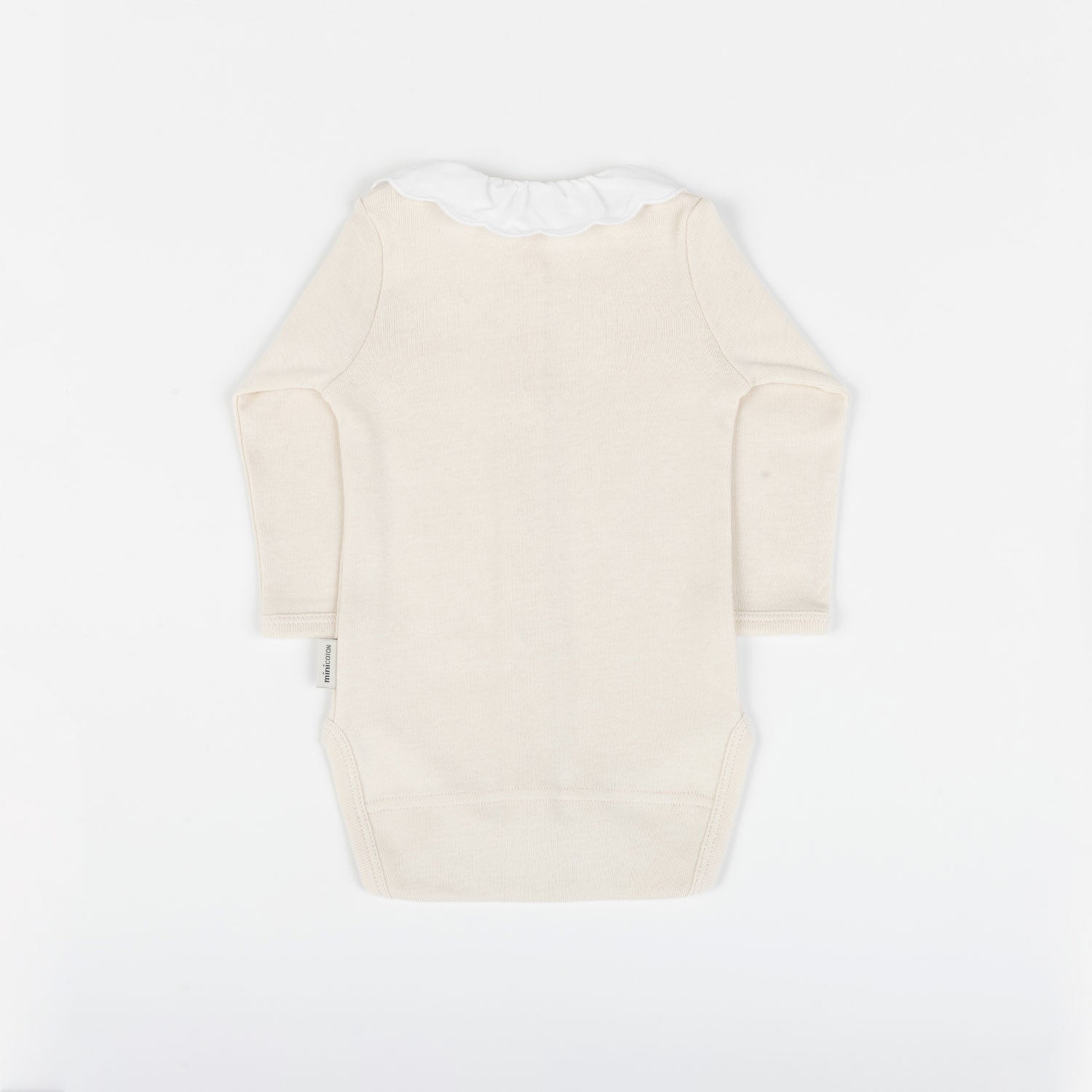 Langarm-Body mit Popeline-Kragen in Wellenform, entworfen, um bequem unter jedem Pullover getragen zu werden. Gefertigt aus 100% weicher und atmungsaktiver Baumwolle, passt er sich perfekt dem Körper des Babys an und bietet Wärme, Bewegungsfreiheit und maximalen Komfort den ganzen Tag über.