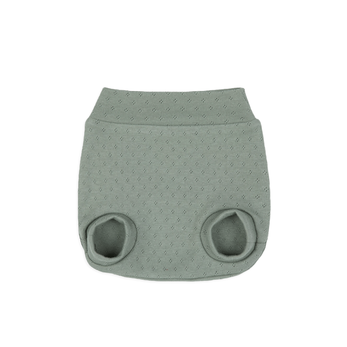 Höschen aus weichem Baumwollstrick in holey. Sehr bequem durch seine Form für die Windel. Weicher Bund für die Taille. Größe 0-3 Monate.