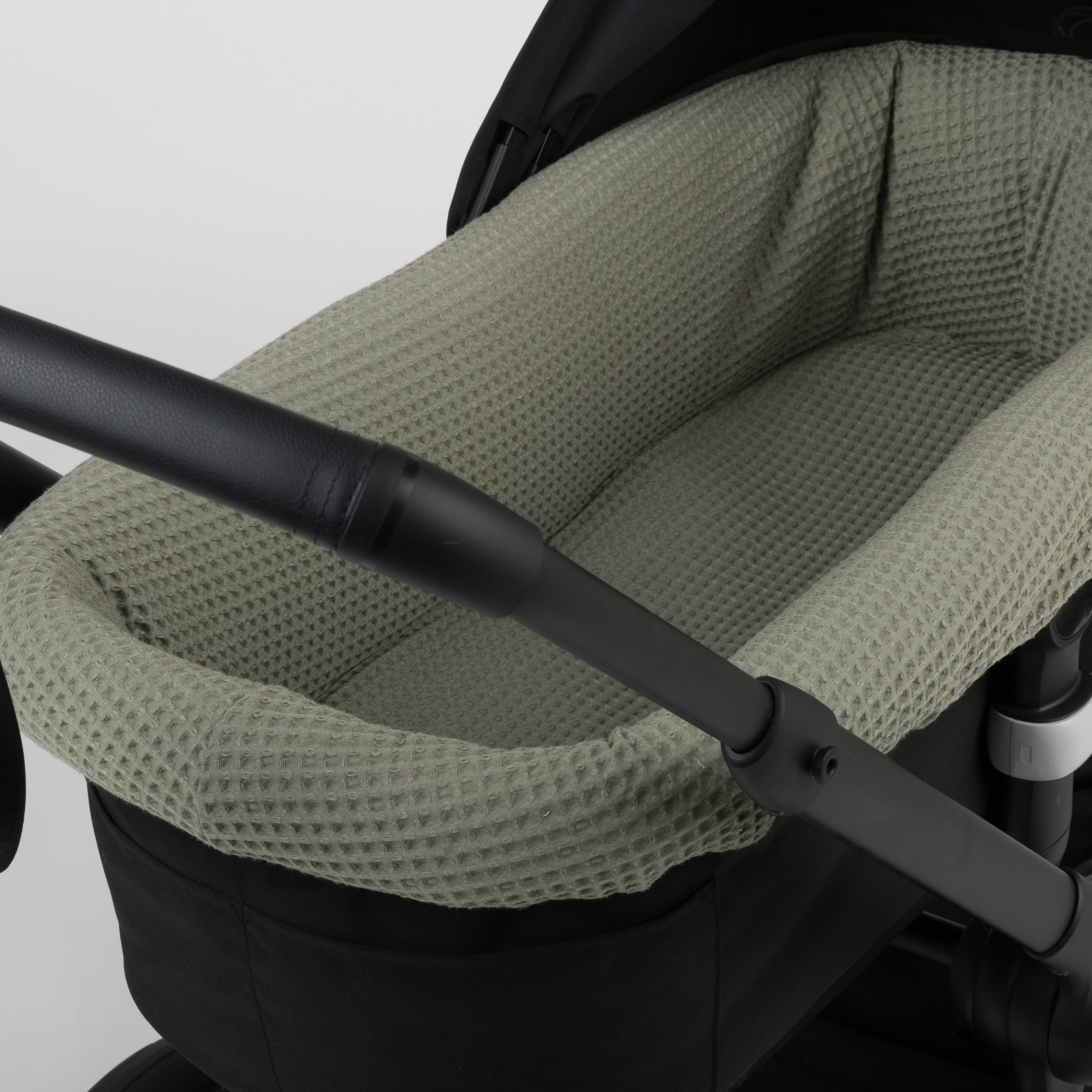Dies ist unser Tragewannebezug für den Bugaboo Fox, Cameleon und Donkey. Minimalistisch, wie wir es so sehr mögen. Er ist in die Tragewanne integriert und passt sowohl mit Fußsackabdeckung als auch ohne, dank seiner seitlichen Bänder und des elastischen Randes. Er bedeckt die gesamte Tragewanne und wird unter die Matratze gelegt, weshalb wir empfehlen, das passende Spannbettlaken zu erwerben (oder Farben und Muster zu kombinieren), um das gesamte Innere einzukleiden. Um die Tragewanne komplett einzukleiden, ist der ovale Schlafsack, ein Pucktuch oder ein Mulltuch ideal… je nach deinen Bedürfnissen.