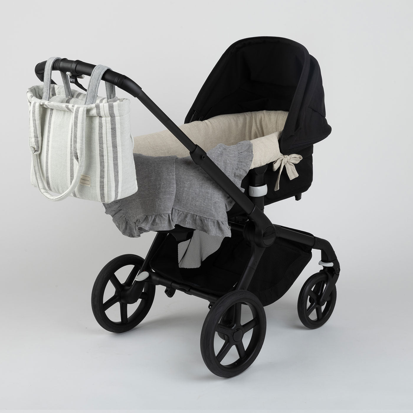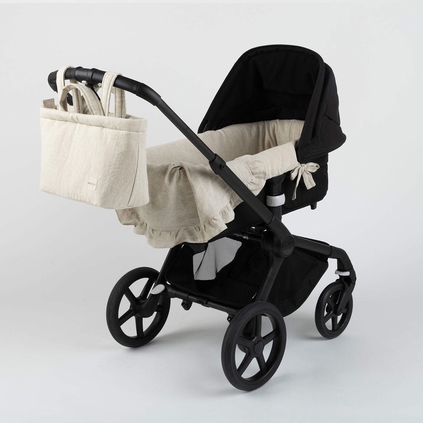 Dies ist unser Tragewannebezug für den Bugaboo Fox, Cameleon, Donkey und Buffalo. Minimalistisch, so wie wir es lieben. Er ist in die Tragewanne integriert und passt sowohl mit als auch ohne Fußabdeckung dank seiner seitlichen Bänder. Er wird über die Matratze gelegt und schafft einen Komfortbereich für das Baby.