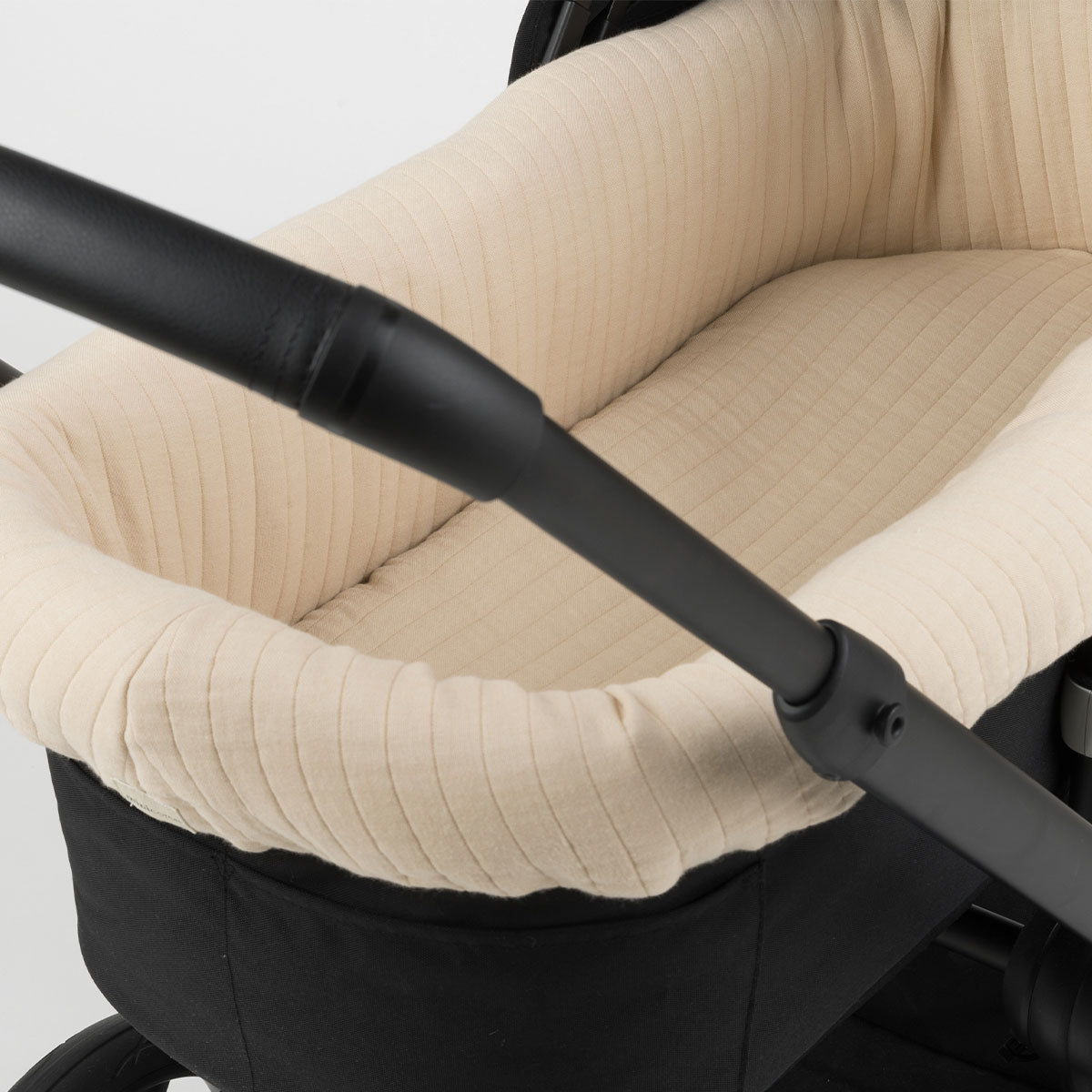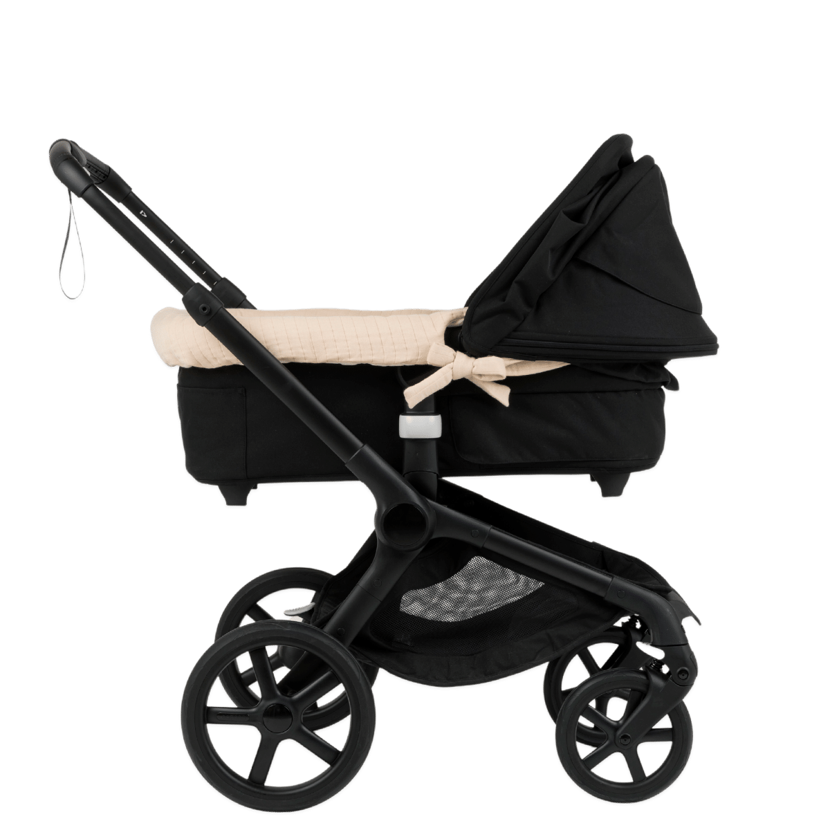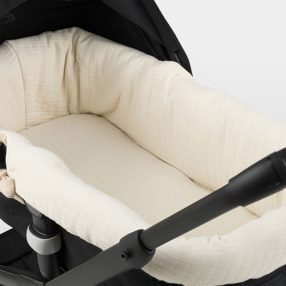 Dies ist unser wendbarer Tragewannebezug für den Bugaboo Fox, Cameleon und Donkey. Minimalistisch, so wie wir es lieben. Er ist in die Tragewanne integriert und passt sowohl mit Fußsackabdeckung als auch ohne, dank seiner seitlichen Bänder und dem elastischen Rand. Er bedeckt die gesamte Tragewanne und wird unter die Matratze gelegt, weshalb wir empfehlen, das Spannbettlaken in Nude, Natur oder dem Farbton, der dir am besten gefällt, zu wählen, um deinen perfekten Look zu erzielen. Um die Tragewanne komplett einzukleiden, sind der ovale Schlafsack, ein Pucktuch oder ein Musselintuch ideal… je nach deinen Bedürfnissen.