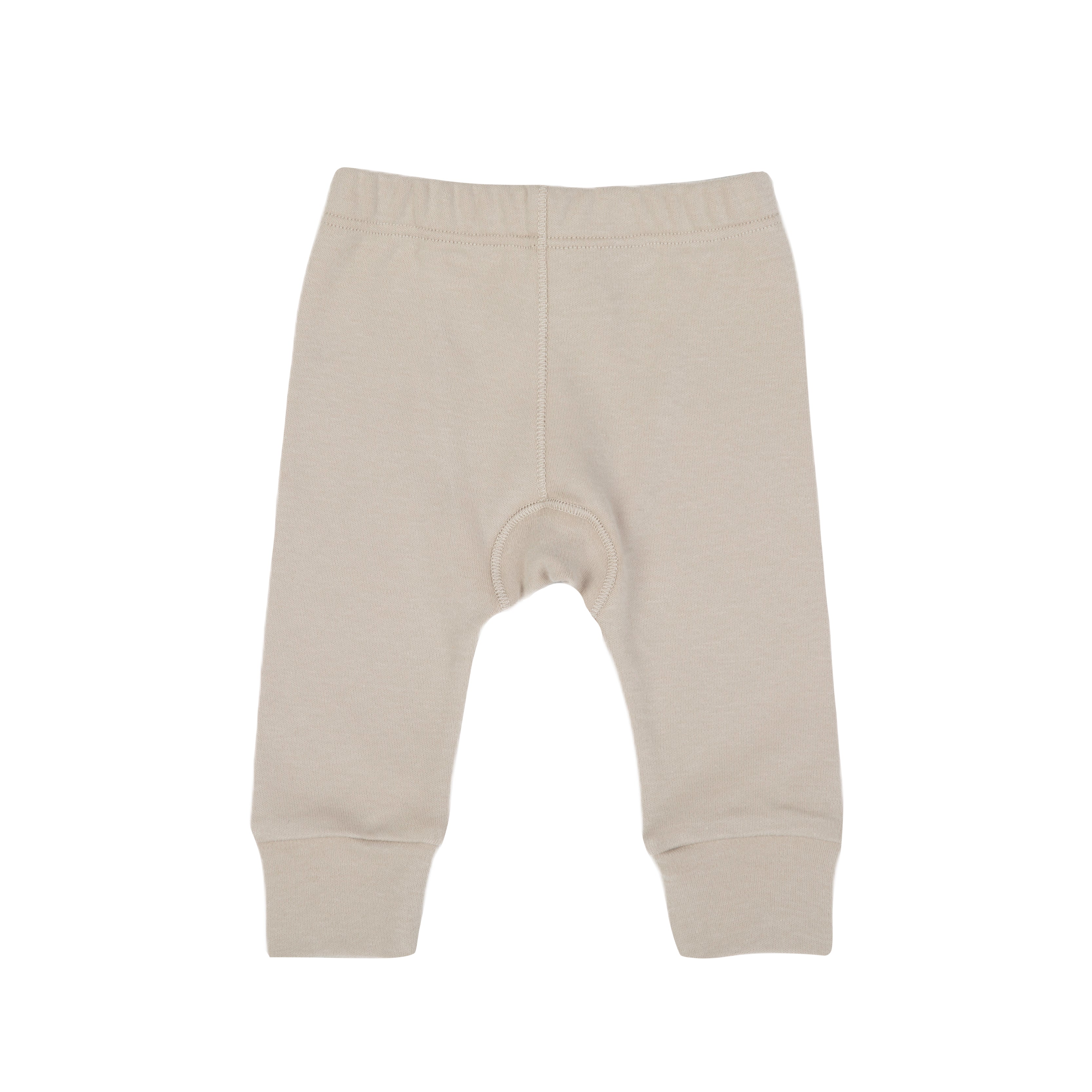 Jogginghose aus Baumwollstrick mit weichem Pfirsichgefühl. Sehr bequem durch die Form für die Windel und mit Bündchen an den Beinabschlüssen. Mit sehr weichem Gummiband, das sich an die Taille anpasst. Größe 0-3 Monate.