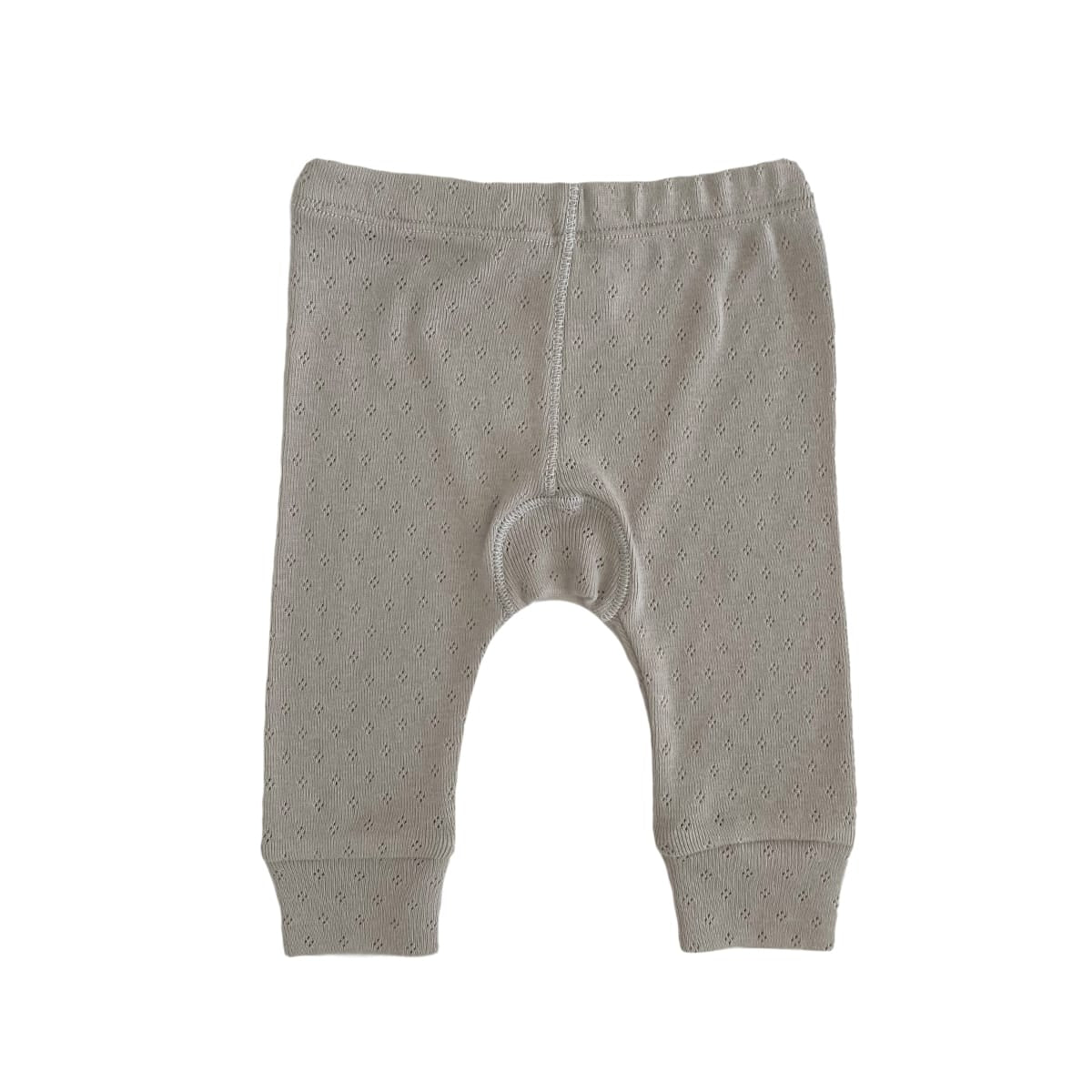Jogginghose aus weichem Baumwollstrick in holey. Sehr bequem durch die Form für die Windel und mit Bündchen an den Beinabschlüssen. Mit einem sehr weichen Gummiband, das sich an die Taille anpasst. Erhältlich in den vier Farben der Kollektion: natur, rosa, wolke und moos. Größe 0-3 Monate.