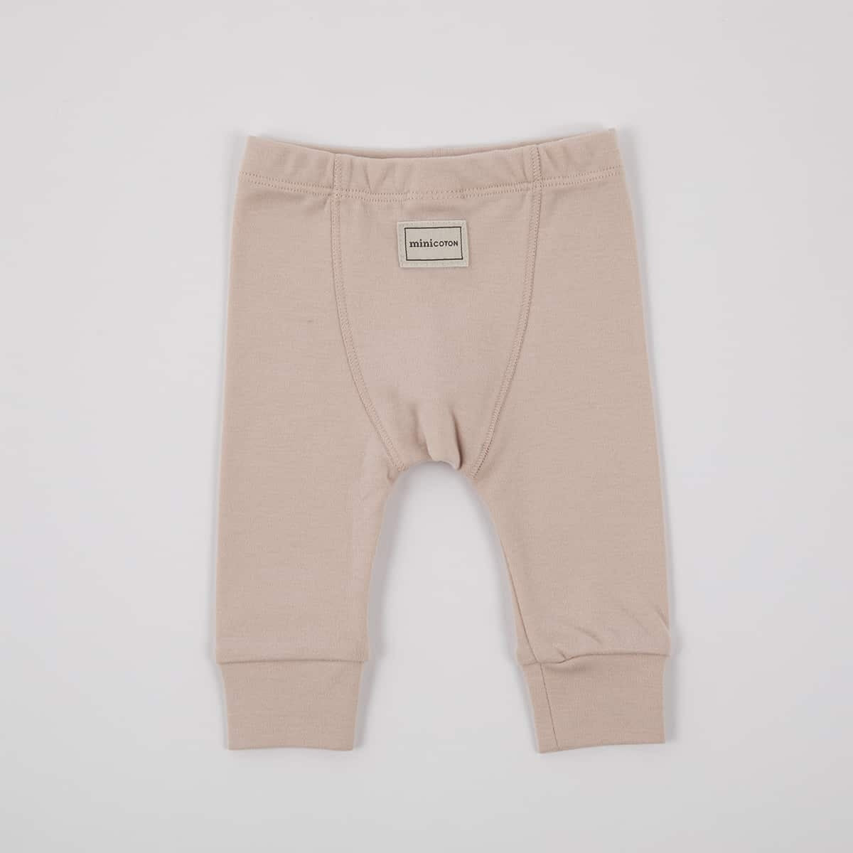 Jogginghose aus Baumwollstrick mit weichem Pfirsichgefühl. Sehr bequem durch die Form für die Windel und mit Bündchen an den Beinenden. Mit sehr weichem Gummiband, das sich an die Taille anpasst. Erhältlich in den vier Farben der Kollektion: natur, rosa, wolke und moos. Größe 0-3 Monate.