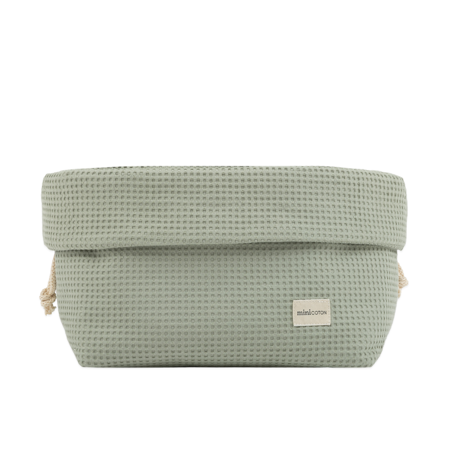 Ideal, um alle kleinen Babyutensilien ordentlich und griffbereit auf dem Wickeltisch zu haben. Dieser Organizer ist geräumig und verfügt über drei Fächer zur Befestigung von Cremetöpfchen. Er ist ein unverzichtbares Accessoire auf dem Wickeltisch oder im Badezimmer. Außerdem hat er Schnüre, um ihn wie eine Tasche zu verschließen und zu transportieren, sodass man ihn mit all seinen Sachen am Wochenende mitnehmen kann.