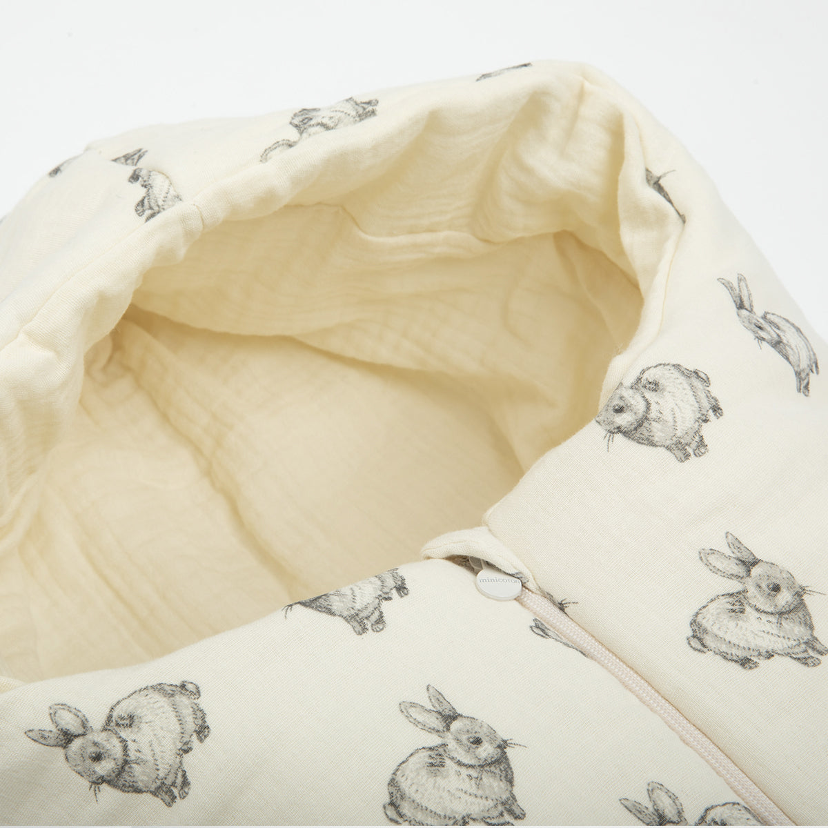 Er ist sehr praktisch, denn dank seines vorderen Reißverschlusses kannst du das Baby warm einpacken und auspacken, ohne es zu wecken. Alle Nähte sind verdeckt, um Komfort zu garantieren, ebenso wie die für die Herstellung gewählten Materialien: Außen- und Innenmaterial aus 100 % Bio-Baumwolle.