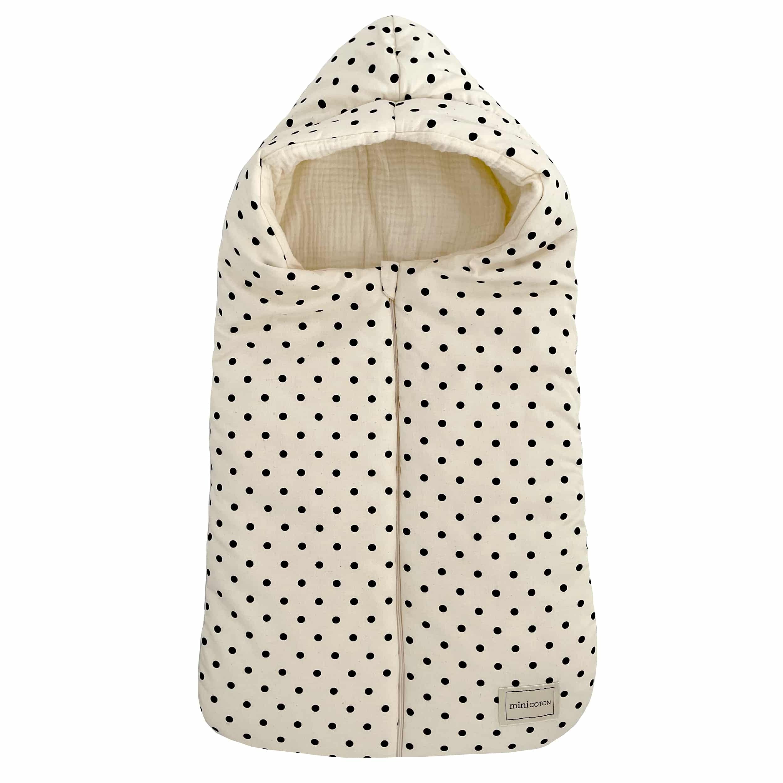 Der ovale Schlafsack ist rundlich und vermittelt dem Baby Wohlbefinden, da er es vor Wind schützt und den Kopf vor Lärm isoliert. Er ist sehr praktisch, denn dank des vorderen Reivers kannst du das Baby wärmend anziehen und ausziehen, ohne es zu wecken. Alle Nähte sind verdeckt, um Komfort zu gewährleisten, ebenso wie die für die Herstellung gewählten Materialien: Außenseite aus 100 % Bio-Baumwolle, Innenseite aus 100 % Bio-Baumwoll-Batist.