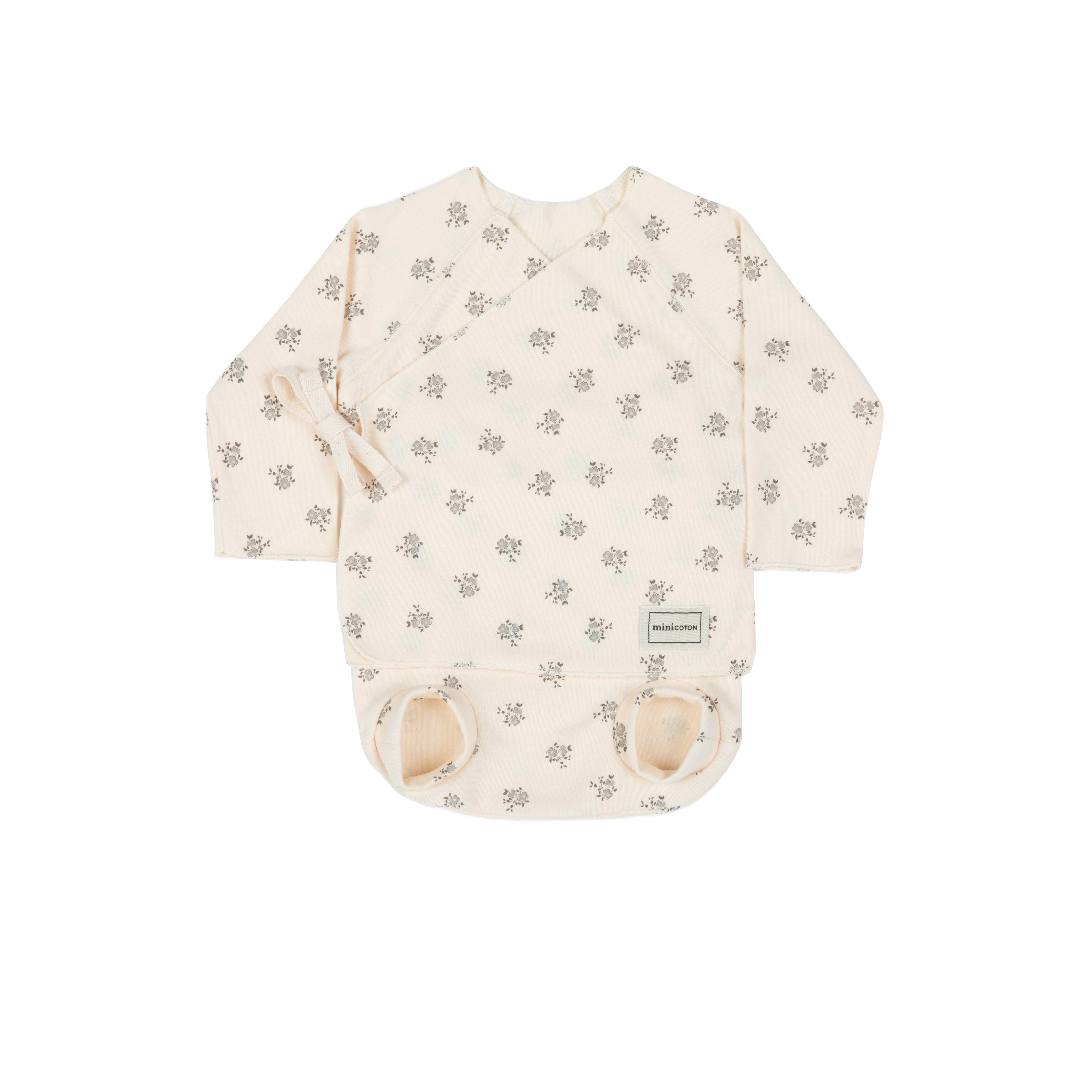 Erstausstattung, ein unverzichtbarer Begleiter in der Kliniktasche. Set bestehend aus einem Wickeltop und einer Hose. Hergestellt aus weichem 100% Baumwollstrick. Passend dazu gibt es auch eine Mütze.
