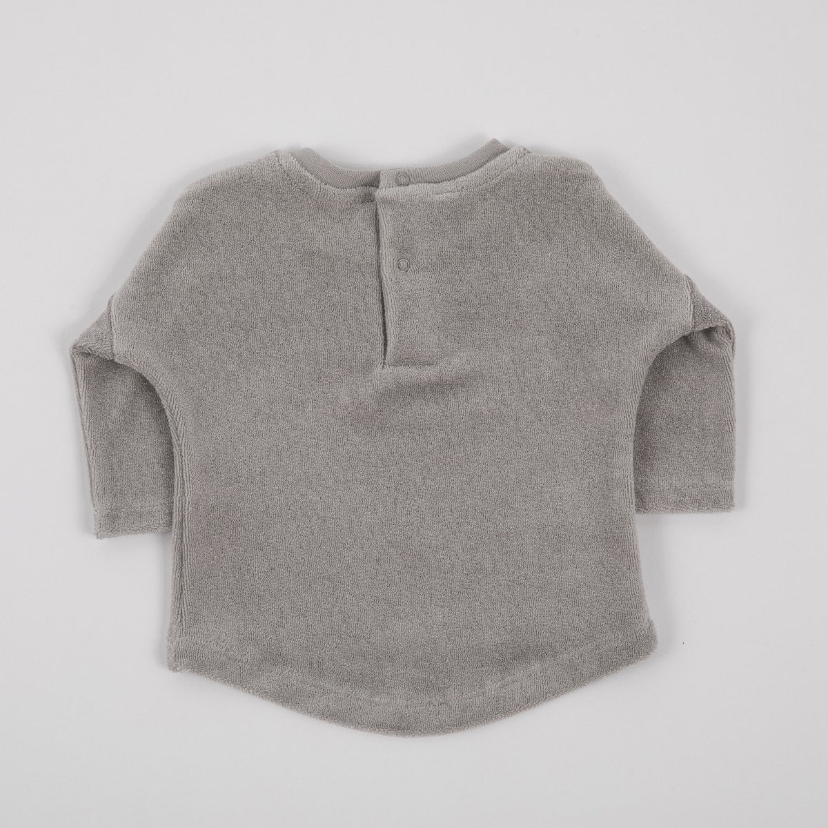 Frottee-Sweatshirt aus der NEWBORN-Kollektion. Es ist aus Baumwollstrick mit Frottee-Textur gefertigt und mit unserem Ton-in-Ton bestickten Logo versehen. Es ist asymmetrisch, wobei der Rücken eine kleine Form hat und länger ist, für einen bequemen und stilvollen Baby-Look. Es wird an der Schulter mit tonalen Druckknöpfen geschlossen. Größe 0-3 Monate.