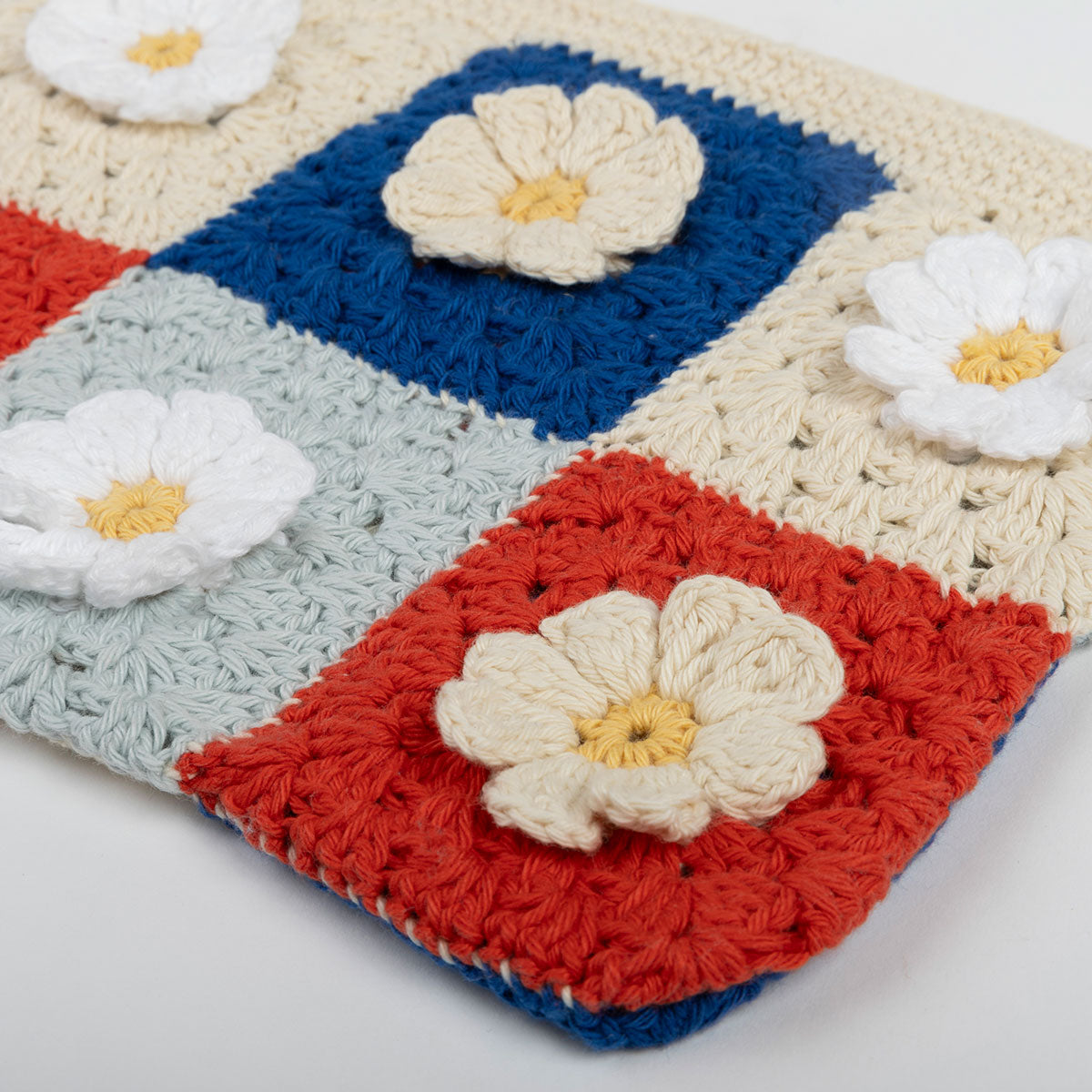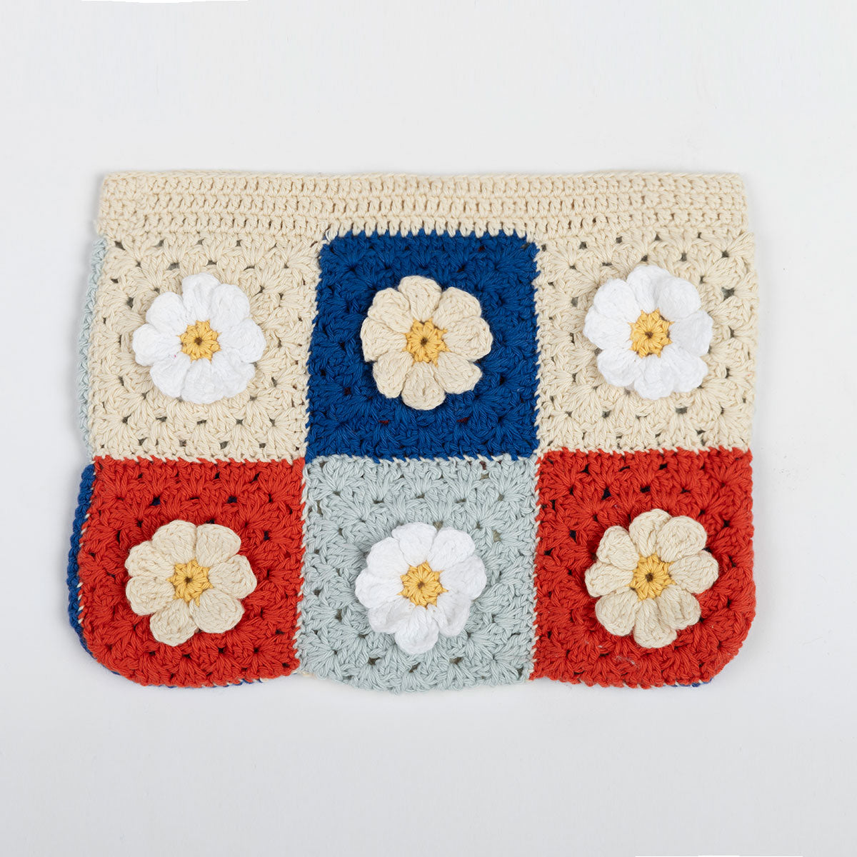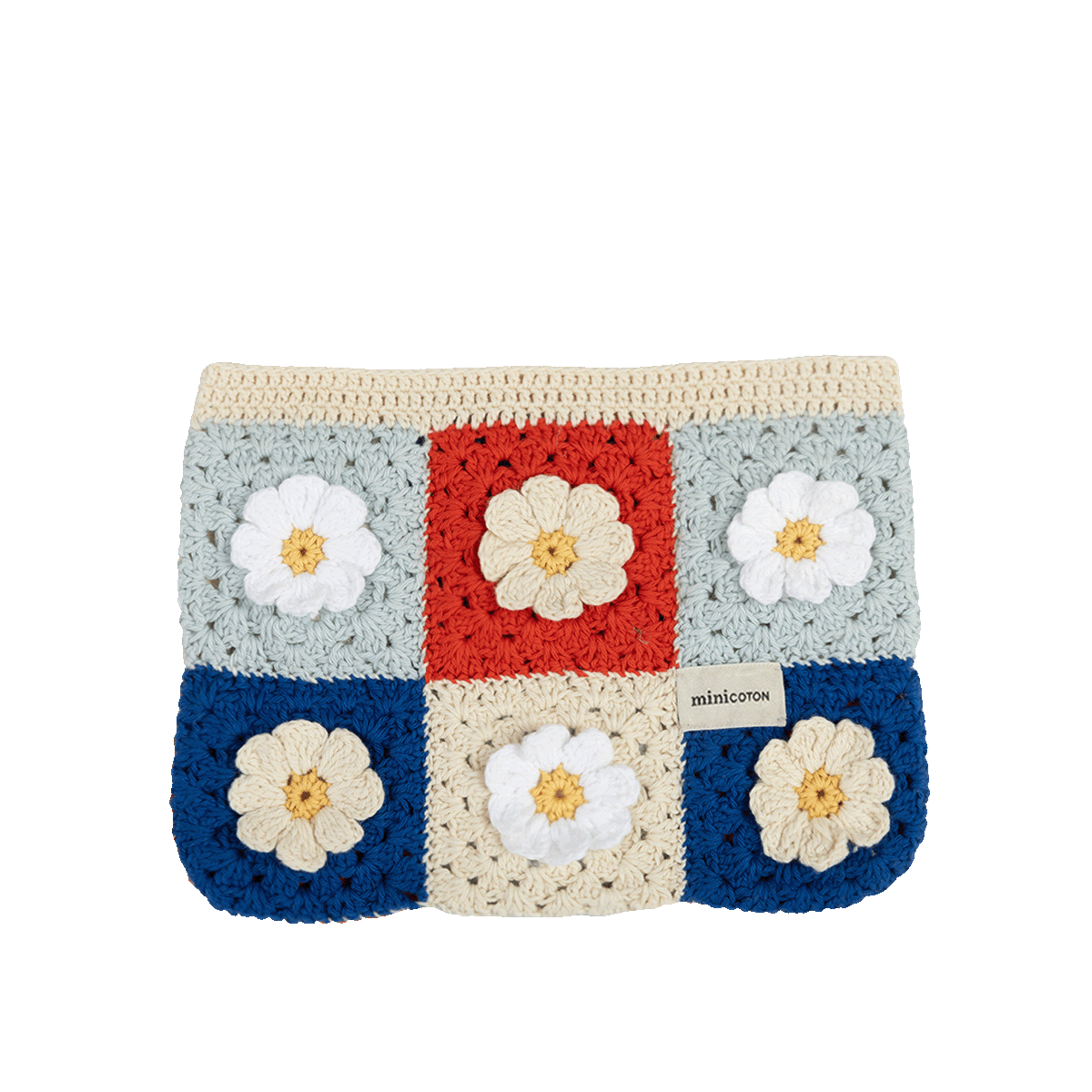 Unsere Häkel-Gürteltasche ist handgefertigt aus 100% Bio-Baumwolle, mit Reißverschluss und Futter.