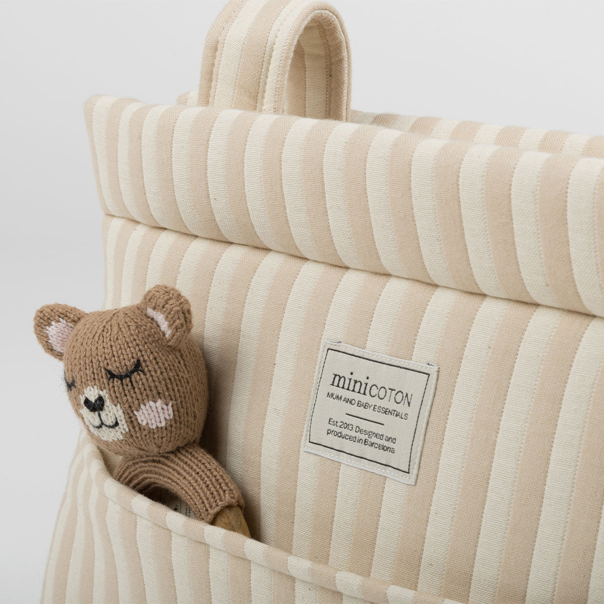 Der Stoff ist sehr besonders, entworfen für unsere Essentials Kollektion. Er zeichnet sich durch seine Polsterung und unregelmäßige Webart aus, die ihm einen lässigen und stilvollen Look verleiht. 100% Oeko tex 100 und BCI.