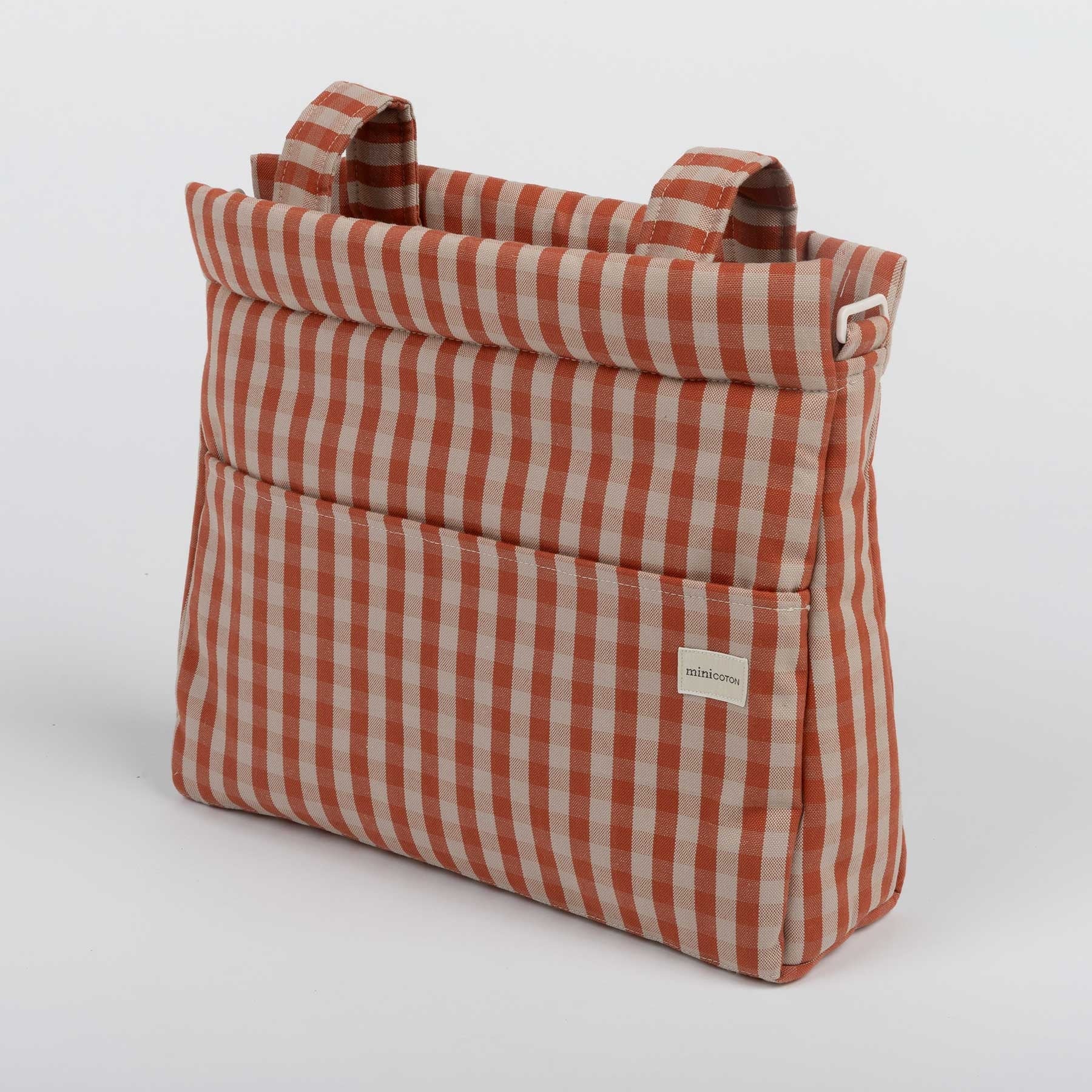 Unsere Icon Tasche für den Kinderwagen ist sehr leicht. Sie ist gepolstert, sodass die Produkte im Inneren geschützt sind. Das Innenfutter besteht aus Frottee mit wasserdichter Rückseite, damit bei einem verschütteten Flüssigkeit diese aufsaugt und nicht durchdringt. Sie wird mit zwei Bändern, die mit einem Klickknopf befestigt werden, am Kinderwagen befestigt. Außerdem hat sie einen abnehmbaren Schultergurt, der ebenfalls mit einem Klickknopf verstellbar ist, um sie bequem über die Schulter oder als Umhängetasche zu tragen. Sowohl der obere Teil als auch die Vordertasche schließen mit einem Reißverschluss.