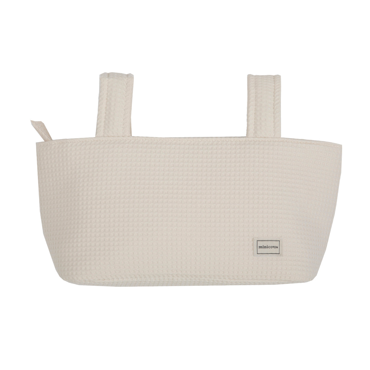 Dies ist unsere Pocket-Tasche für den Kinderwagen. Sie ist sehr leicht, mit Reißverschluss und zwei kleinen Innentaschen. Sie ist gepolstert, sodass die Produkte im Inneren geschützt sind. Sie wird mit Druckknöpfen am Kinderwagenlenker befestigt. Sie kann auch als Pocket für das Babybett verwendet werden, um die kleinen Dinge griffbereit zu haben.