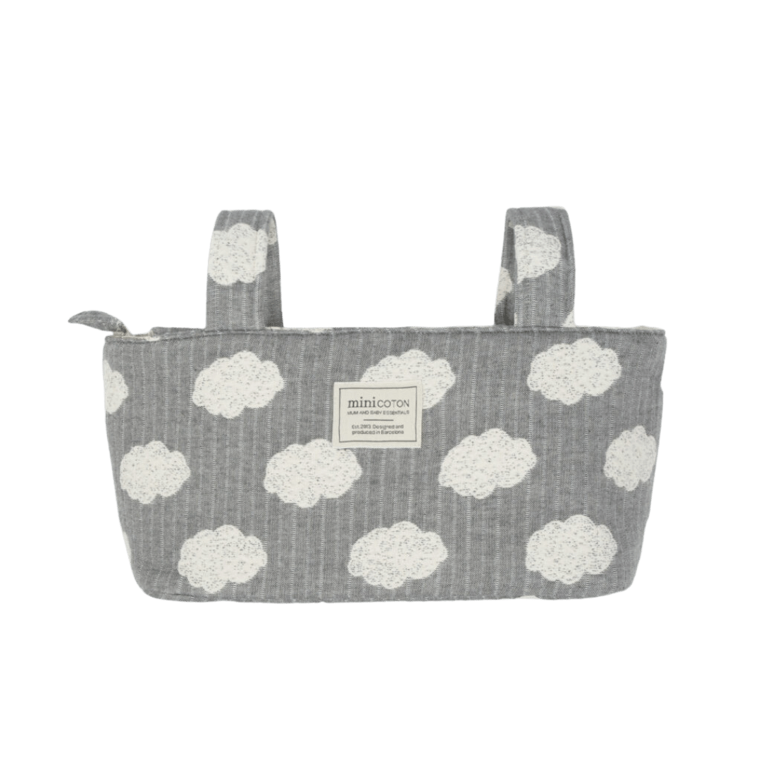 Dies ist unsere Pocket Tasche für den Kinderwagen. Sie ist sehr leicht, mit Reißverschluss und zwei Innentaschen. Sie ist gepolstert, sodass die Produkte im Inneren geschützt sind. Sie wird mit Druckknöpfen am Griff des Kinderwagens befestigt. Das Gewebe ist sehr speziell, entworfen für unsere Essentials Kollektion. Es zeichnet sich durch seine Polsterung und Unregelmäßigkeiten in der Webart aus, die es lässig und stilvoll machen. 100% Oeko tex 100 und BCI.