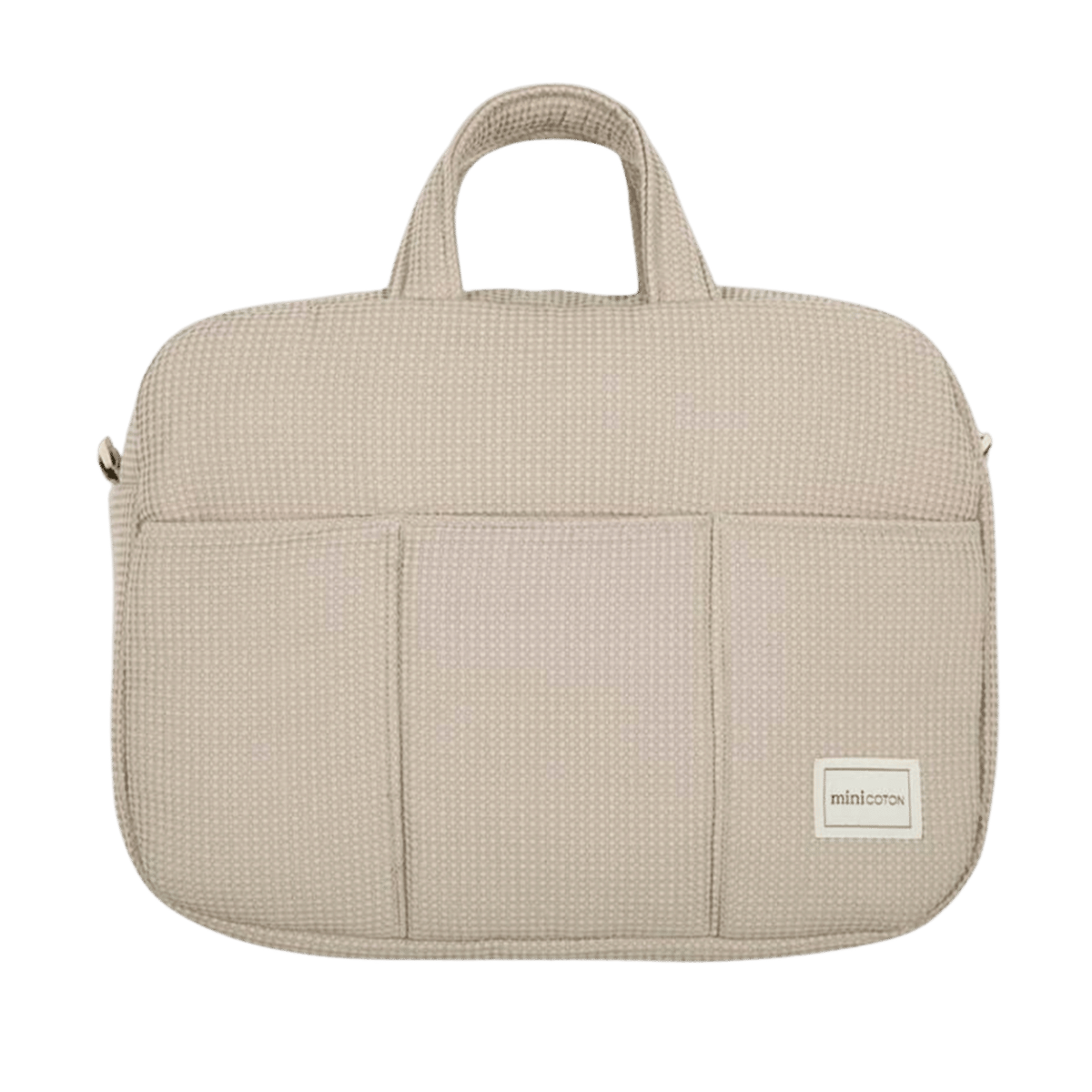 Unsere Wickeltasche ist sehr praktisch und leicht, gepolstert, um die Dinge im Inneren zu schützen. Außerdem ist sie als Wochenendtasche gedacht. Sie hat zwei Innentaschen zur Organisation der Wechselkleidung und drei Außentaschen. Reißverschluss und abnehmbarer Schultergurt.