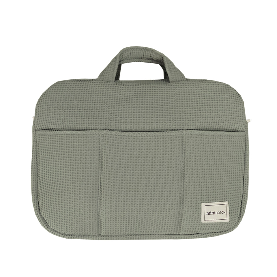 Unsere Wickeltasche ist sehr praktisch und leicht, gepolstert, um die Dinge im Inneren zu schützen. Außerdem ist sie als Wochenendtasche gedacht. Sie hat zwei Innentaschen zur Organisation der Wechselkleidung und drei Außentaschen. Reißverschluss und abnehmbare Schulterriemen.