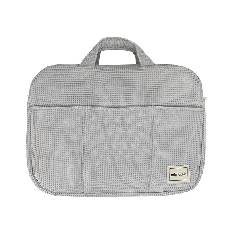 Unsere Wickeltasche ist sehr praktisch und leicht, gepolstert, um die Dinge im Inneren zu schützen. Außerdem ist sie als Wochenendtasche gedacht. Sie hat zwei Innentaschen zur Organisation der Wechselkleidung und drei Außentaschen. Reißverschluss und abnehmbare Schulterriemen.
