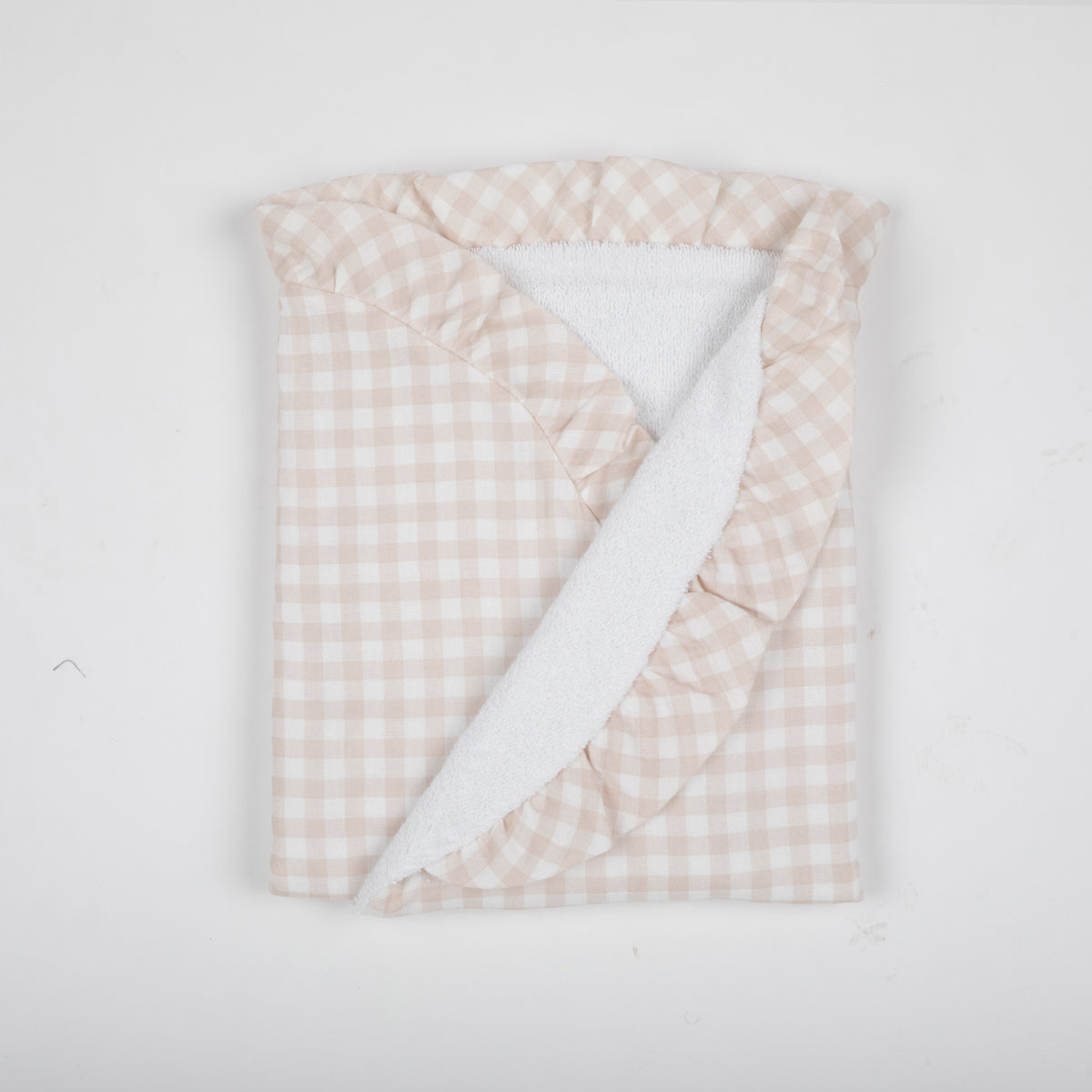 Unsere Puckdecke besteht aus 100% Bio-Baumwoll-Bambusstoff und weichem, hochsaugfähigem französischem Frottee.