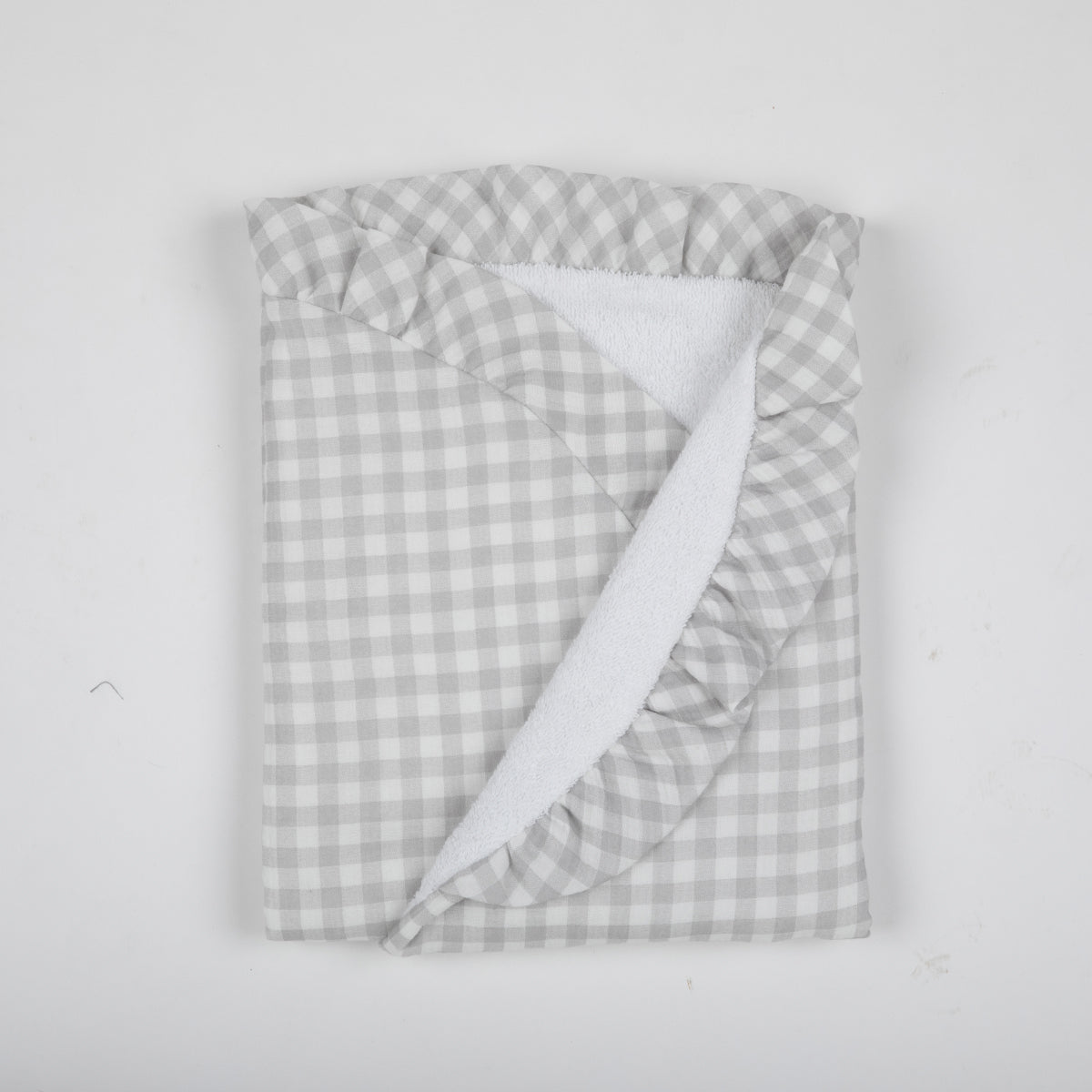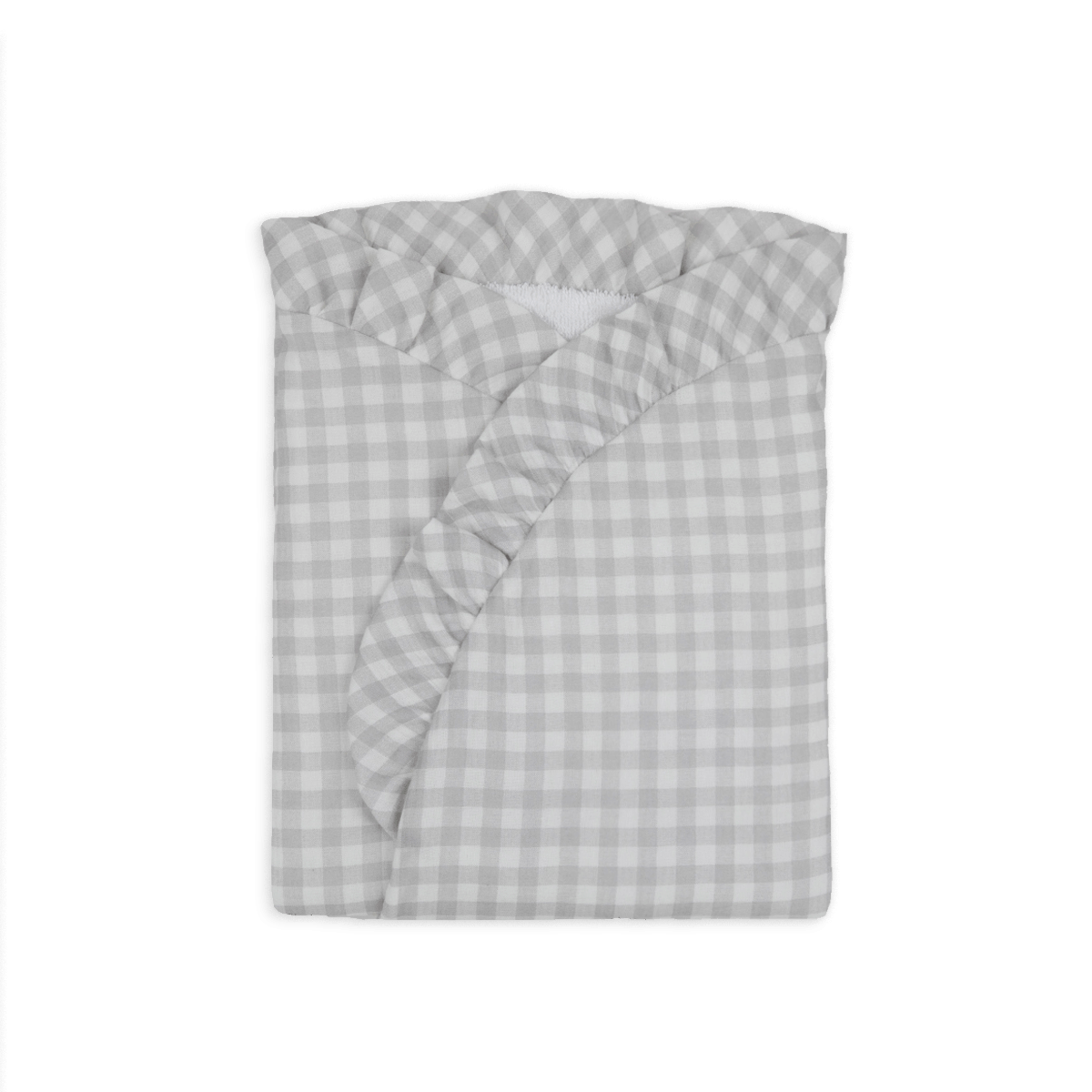 Unsere Puckdecke besteht aus 100% Bio-Baumwoll-Bambusstoff und weichem, hochsaugfähigem französischem Frottee.