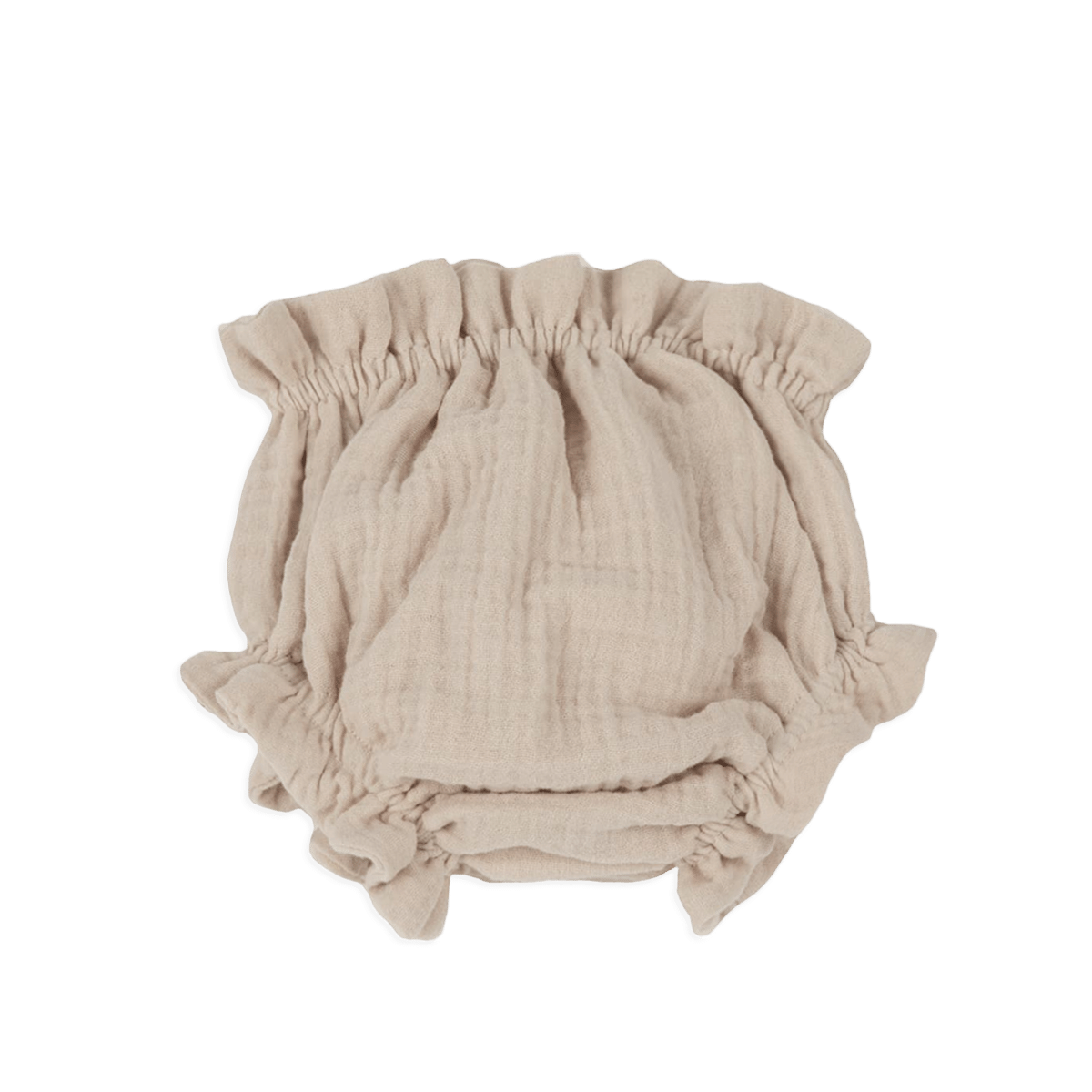 Nahtlos, wendbar, mit weichen Gummibändern. Größe 0-12 Monate, passt sich aber durch seine Eigenschaften gut an und fällt groß aus. 100% Bio-Baumwoll-Batist mit GOTS- und OEKO TEX-Zertifikat.
