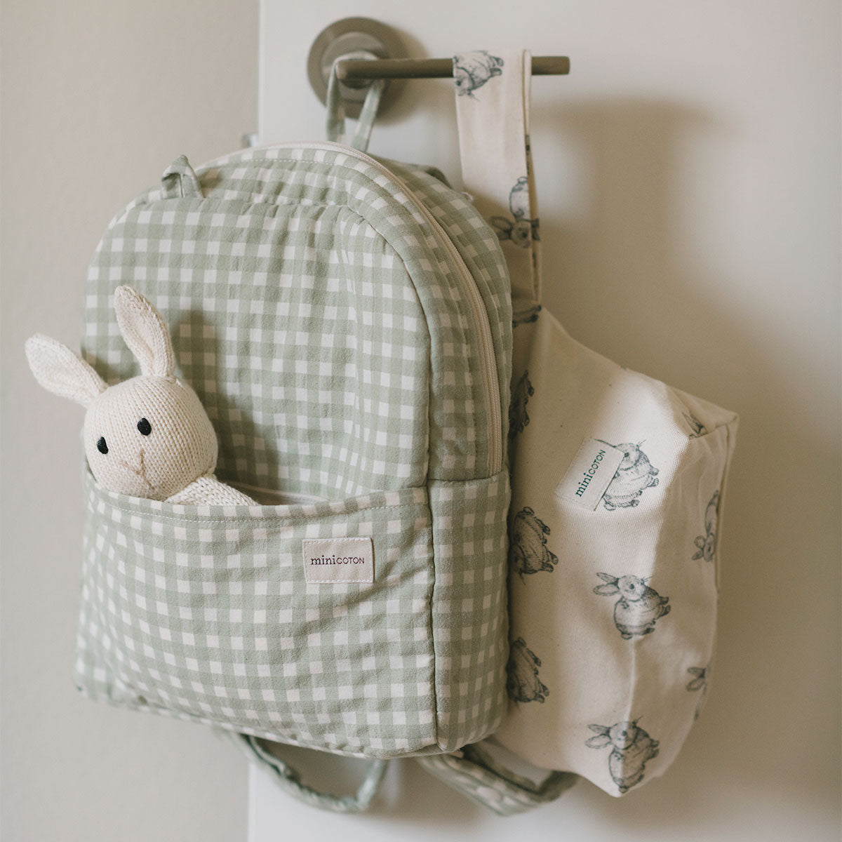 Interior lined with organic cotton with Minicoton logo.
