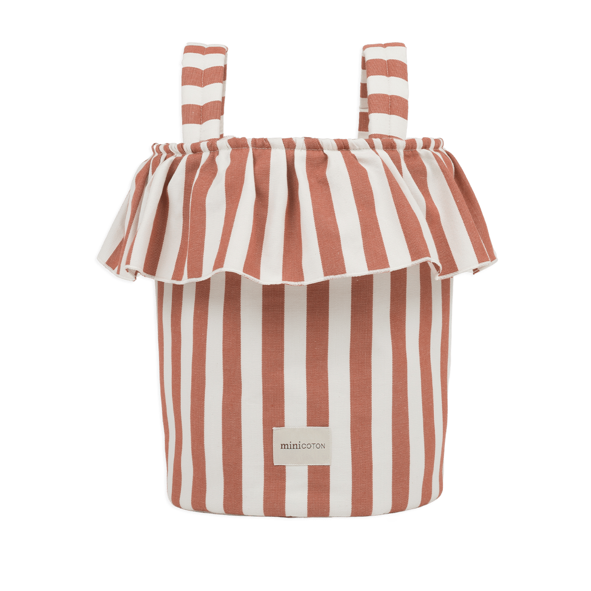 A very special bag because of its removable handles, which take different positions to be perfect as a handbag or stroller bag. With just two clicks your bag changes format to accompany you in the best way. It closes very practically with its cords at the top, like a snack bag. It has great capacity and its interior is made of water and stain repellent fabric, easy to clean with a damp cloth. Outer fabric 100% cotton.
