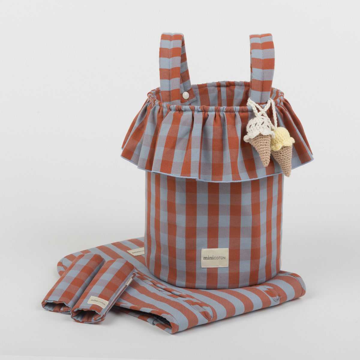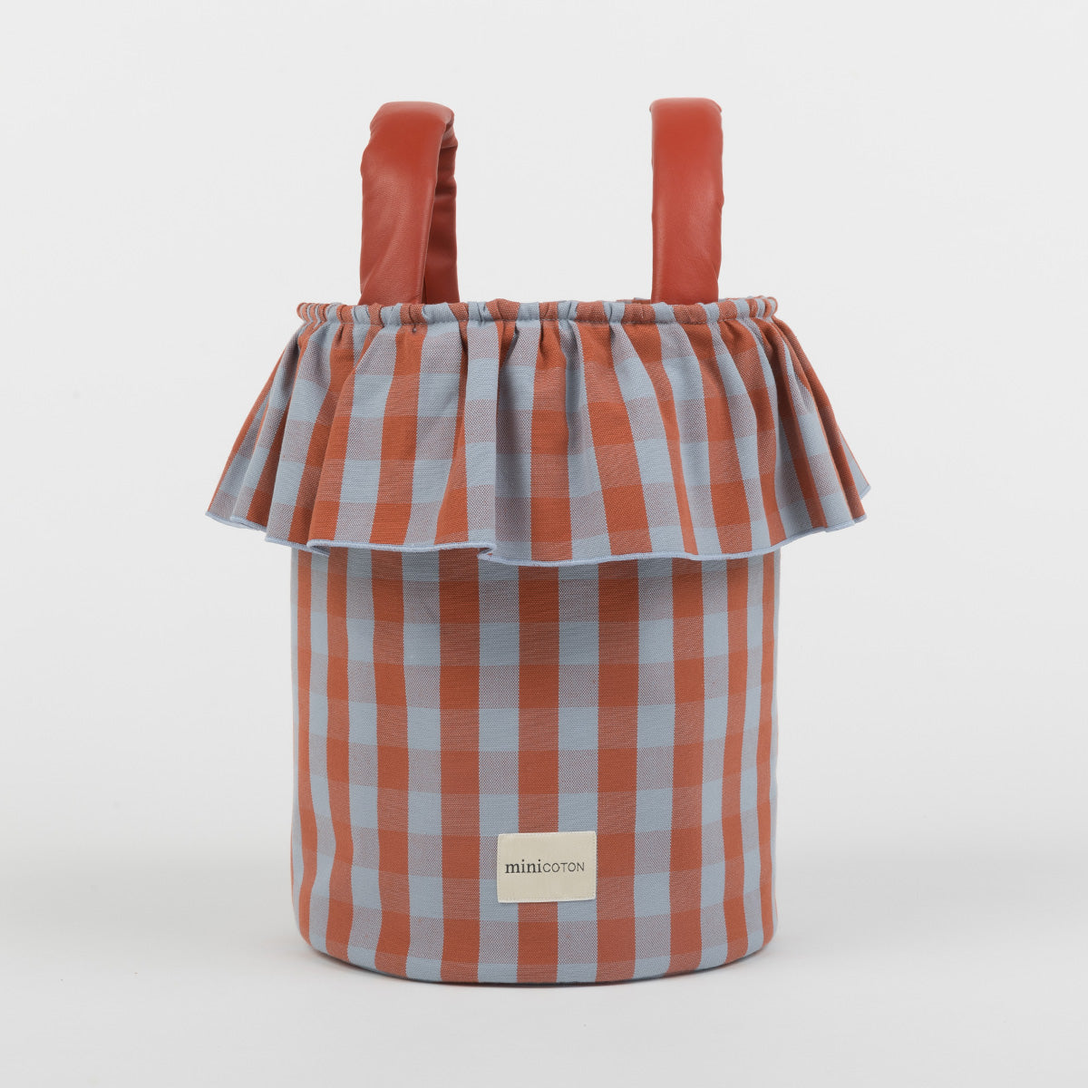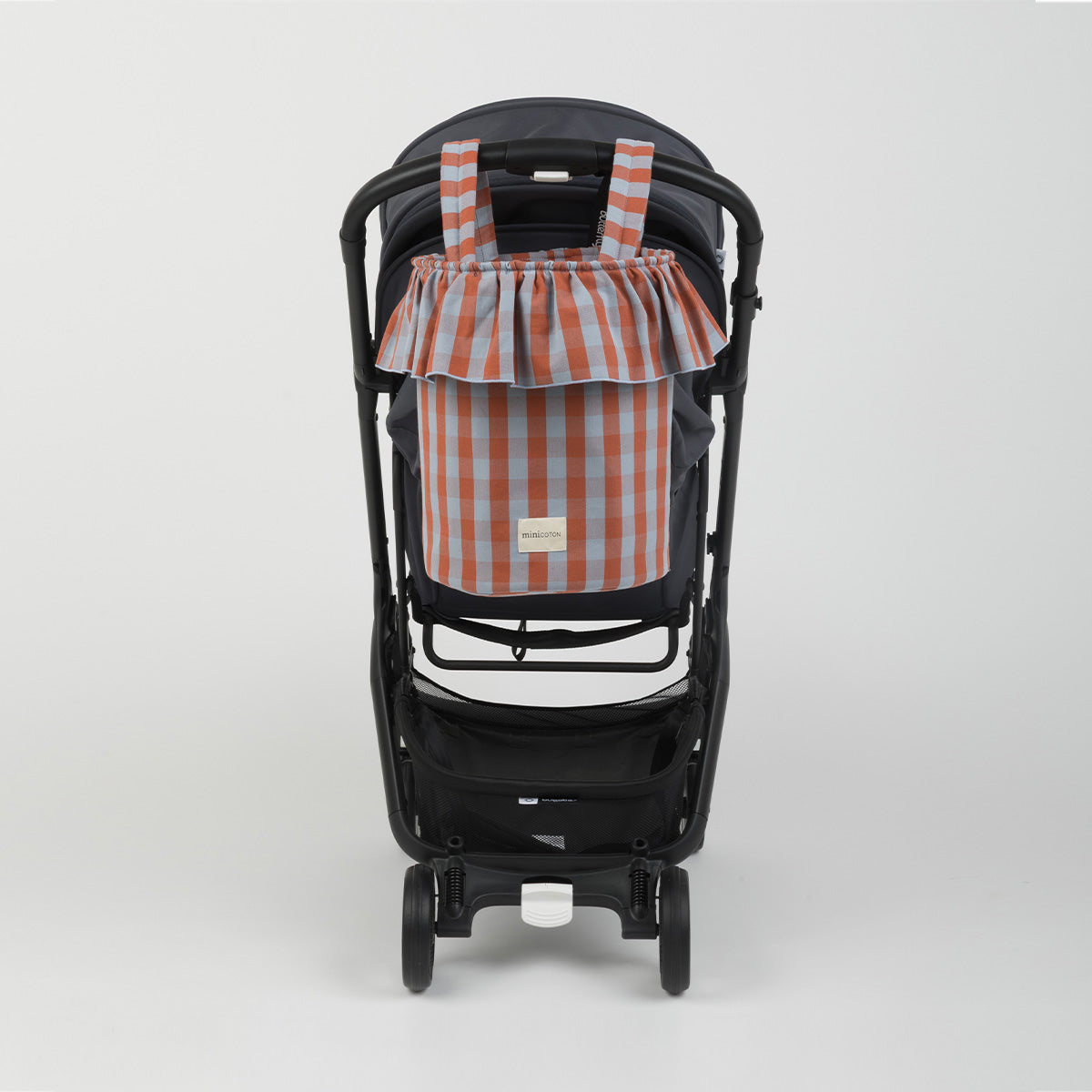 A very special bag because of its removable handles, which can be positioned differently to make it perfect as a handbag or stroller bag. With just two clicks, your bag changes shape to accompany you in the best way. It closes very practically with its cords at the top, like a snack bag. It has great capacity and its interior is made of water-repellent fabric. The exterior is 100% cotton.