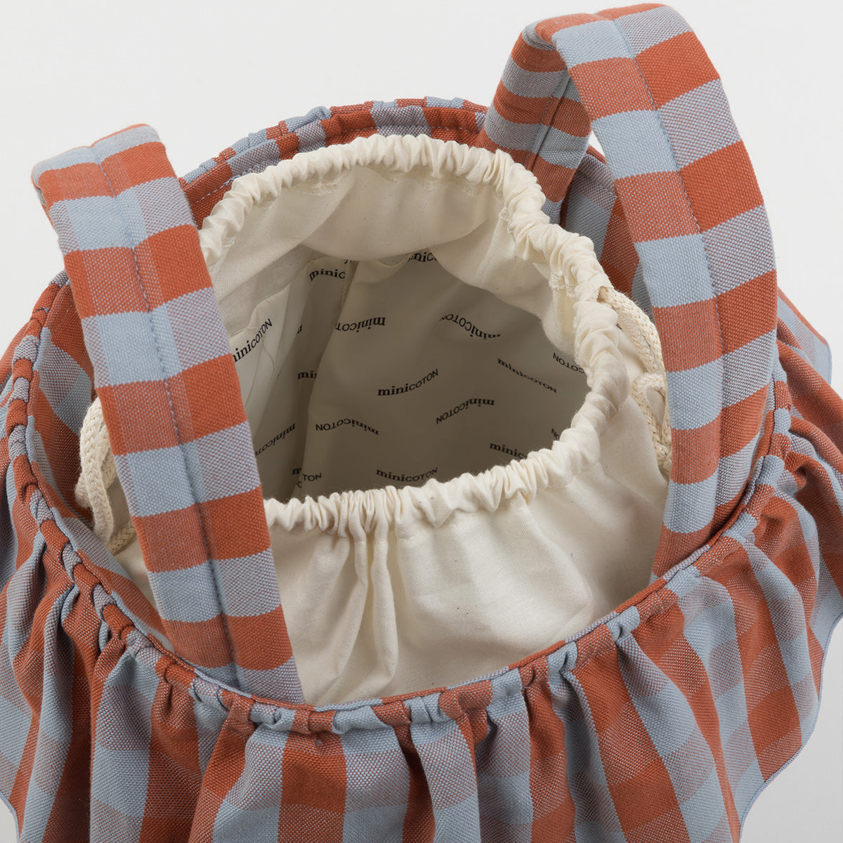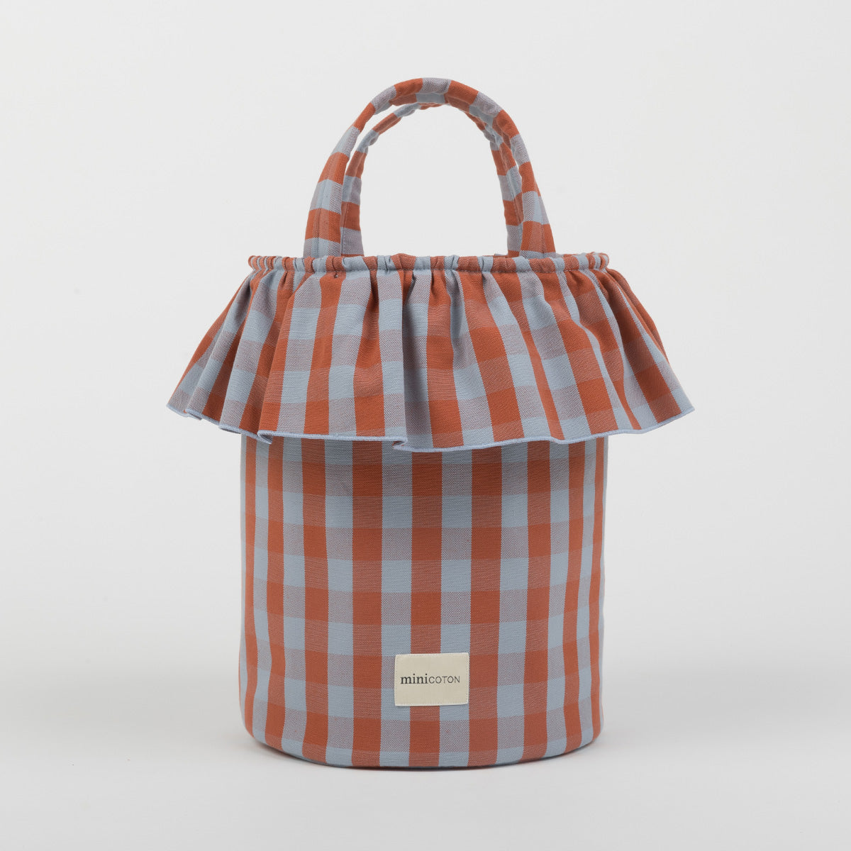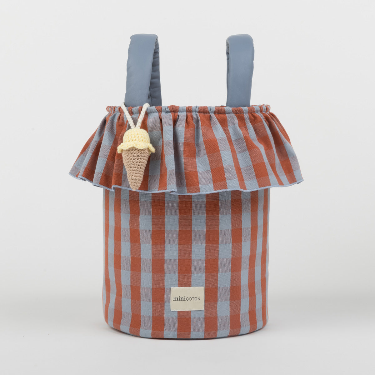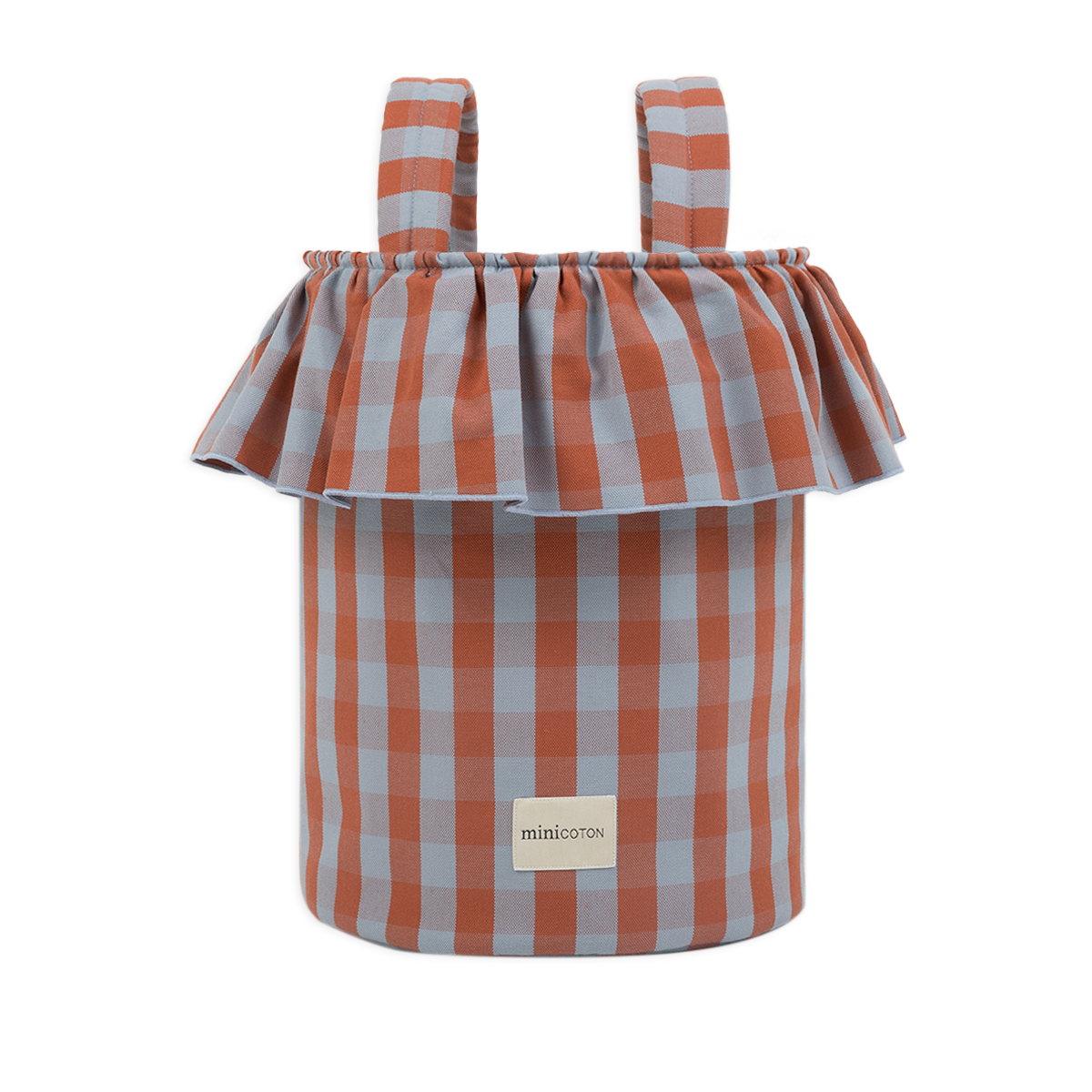 A very special bag because of its removable handles, which can be positioned differently to make it perfect as a handbag or stroller bag. With just two clicks, your bag changes shape to accompany you in the best way. It closes very practically with its cords at the top, like a snack bag. It has great capacity and its interior is made of water-repellent fabric. The exterior is 100% cotton.