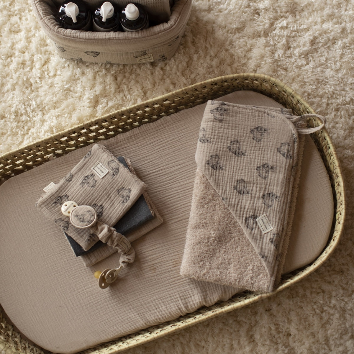 Universal fitted sheet for carrycot stroller mattresses, changing basket, bassinet, and prams.