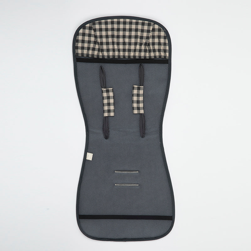The back in 3D technical fabric makes it very breathable, as well as making the seat more comfortable. It can be washed with cold water and neutral liquid soap on a delicate cycle. Measurements: 84 x 36 cm.