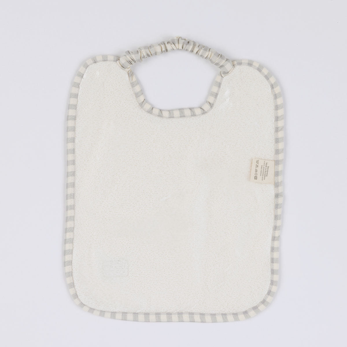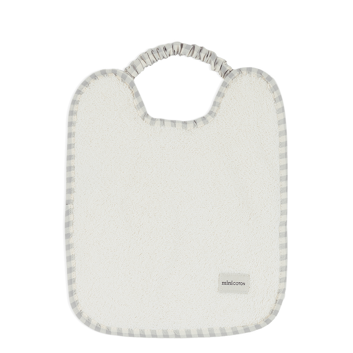 Our new terry bib, with a waterproof plastic back and elastic neck, is designed to make mealtimes easier both at nursery and at home. Thanks to its elastic band, it is easy to put on and take off, and the waterproof back makes it stain-proof.